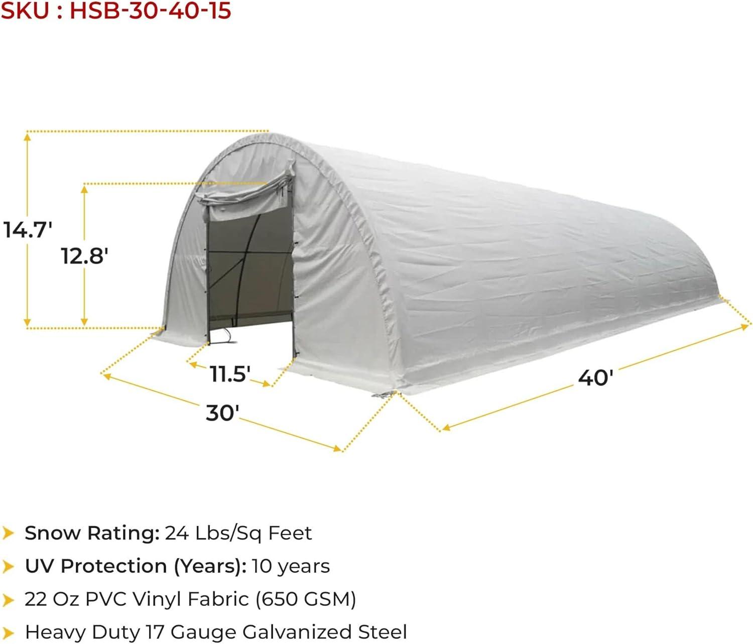 - Dimensions: 30' (W) x 40' (L) x 15' (H)