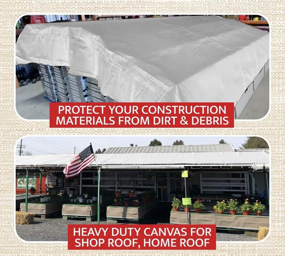 6′ x 8′ Dark Brown Canvas Tarp 12oz – Water Resistant & Breathable – Heavy Duty Tarps – Multipurpose Tarpaulin Cover for Camping Tent(White)