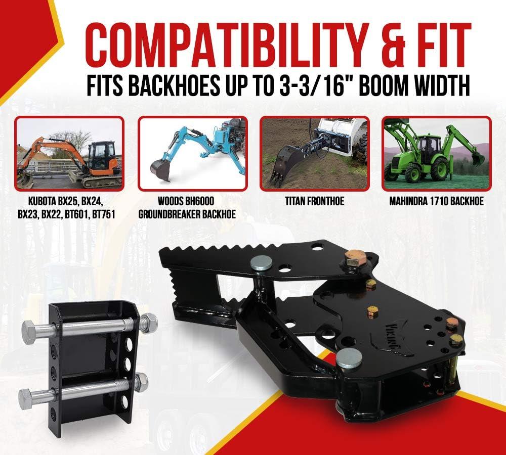 Universal Bolt-On Fitment: Designed to fit backhoes with up to 3-3/16″ boom width, including Kubota BX models, Mahindra 1710, Woods BH6000, and Titan Fronthoe, ensuring quick and hassle-free installation.