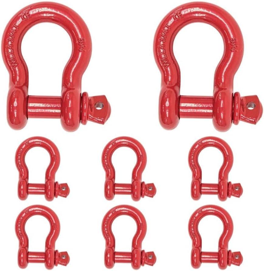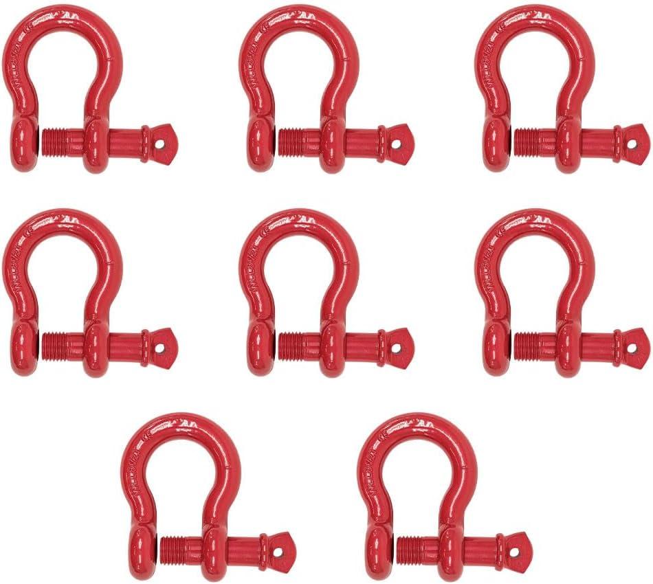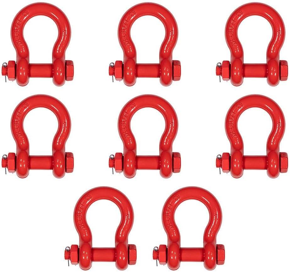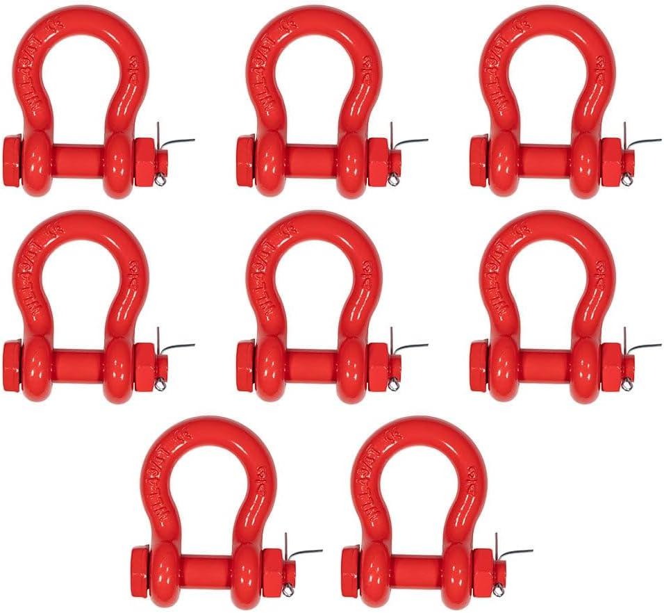 Mytee Products 1-1/8" Anchor Shackle Forged Carbon Steel w/Alloy Screw Pin WLL # 9.50 Tons 19,000 lbs Double Rust Protection Heavy Duty D Ring Shackle for Towing, Rigging & Vehicle Recovery (2 Pack)(8 - Pack)