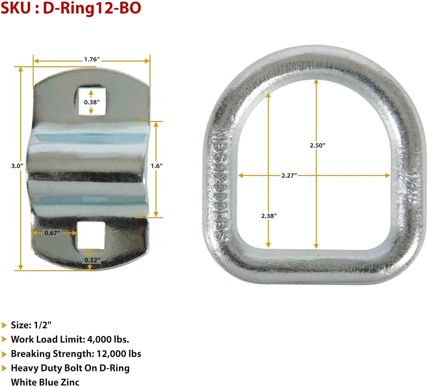 Mytee Products 1/2″ Bolt-On D Ring Heavy Duty Tie Down Anchor w/Mounting Brackets 12,000 LBS Breaking Strength – White Blue Zinc | Cargo Tie Down Anchors for Flatbed Trucks Trailers (8 Pack)(4 – Pack)