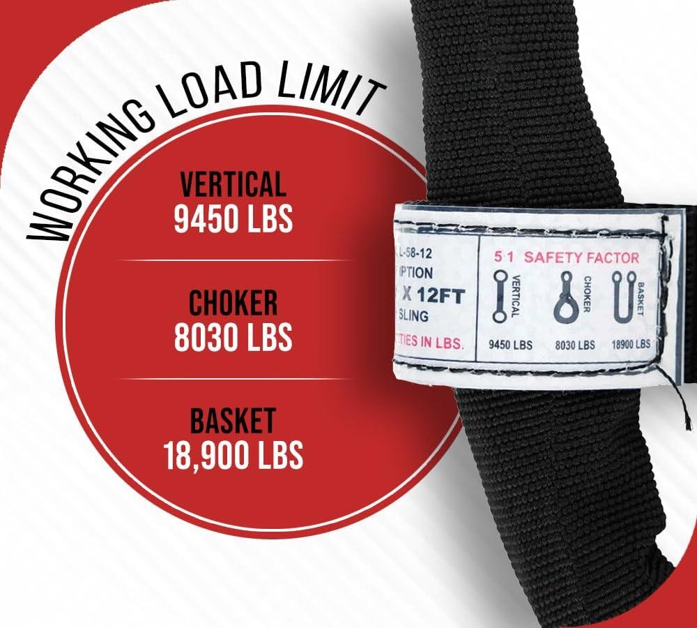 Mytee Products 1/2″ x 6′ Green Eye-Eye Web Sling – Synthetic Nylon Super Lift Sling with Protective Sleeves (Vertical 6120/ Choker 5200/ Basket 12,240 lbs WLL) – Auto Hauling, Towing, Rigging(Gray: 3/4″)