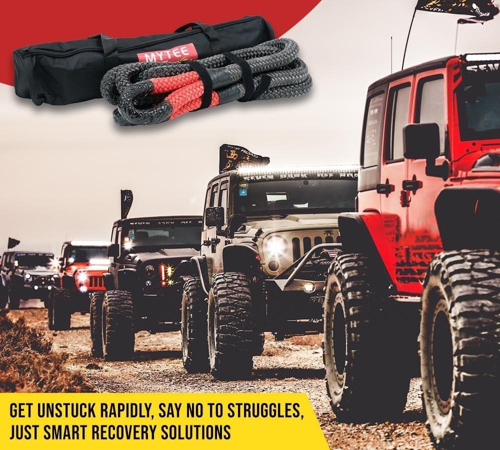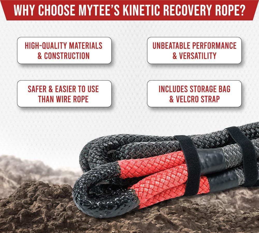 Mytee Products 1″ x30′ Kinetic Recovery Rope w/Velcro Strap & Tote Bag – 33,900 LBS Red & Black – Heavy Duty Kinetic Energy Tow Rope – Offroad Snatch Strap for Truck, SUV, UTV, ATV, Car, Tractor(1/2″ x 20′)
