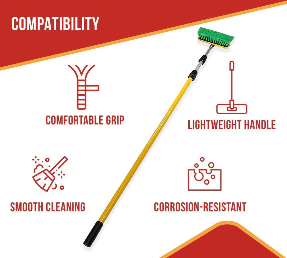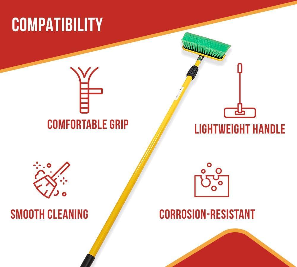 Mytee Products 10″ Bi-Level Car Wash Brush and 4′ to 8′ Extendable Handle w/Soft Bristles Suitable for Auto RV Truck Boat Camper Exterior Washing Cleaning, Green(1 – Pack)