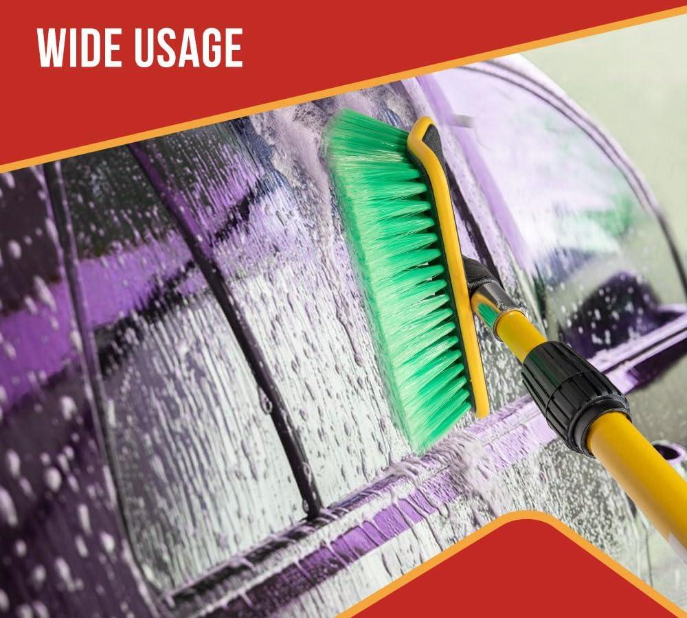 • Bil-Level Bristles: Our car cleaning brush with a long handle has a unique bi-level bristle design that enables better contact with tight spaces or at different angles. The two other levels will work smoothly on curved surfaces like the contours of a car, truck, or trailer. It will help you reach into crevices and grooves, removing dirt and grime.