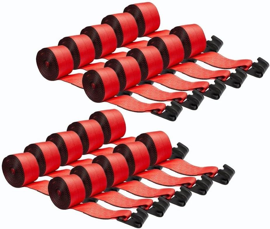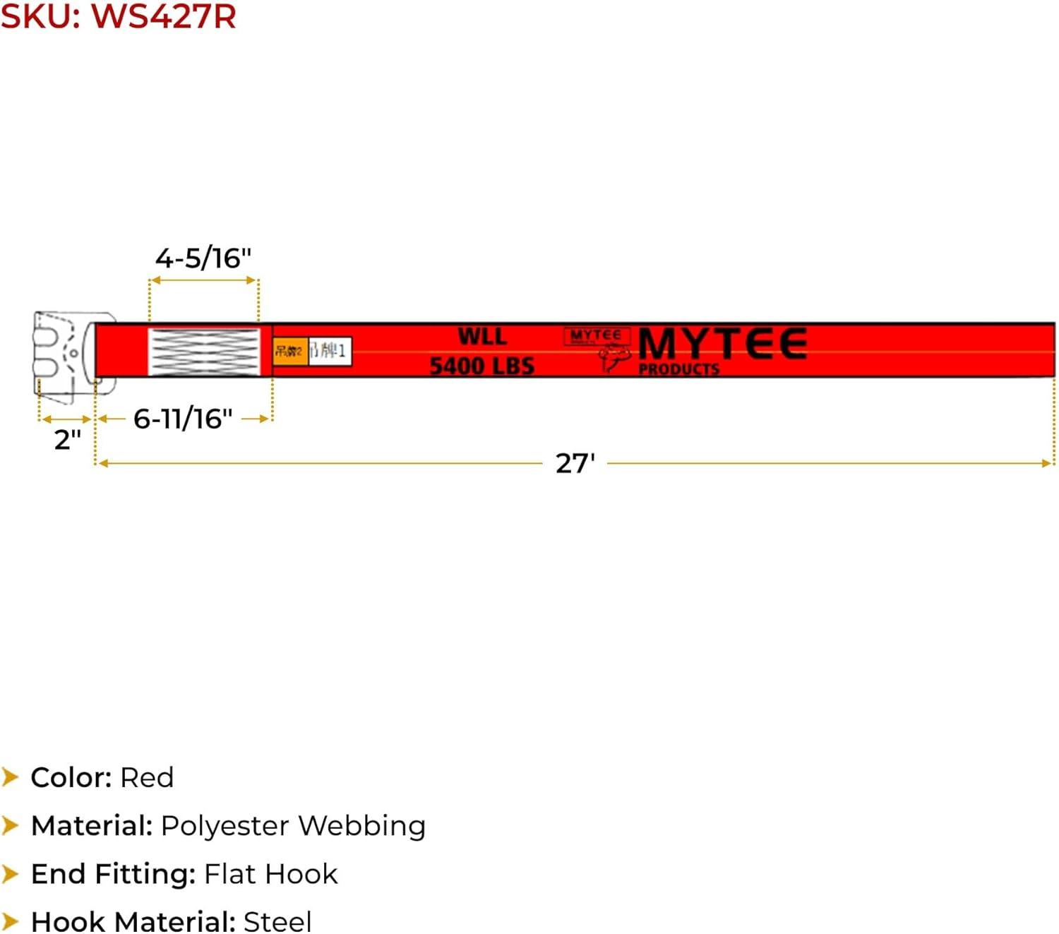 Mytee Products (10 Pack) 4″ x 27′ Winch Straps w/Flat Hook, WLL 5400 Flatbed Tie Down Strap(Red)