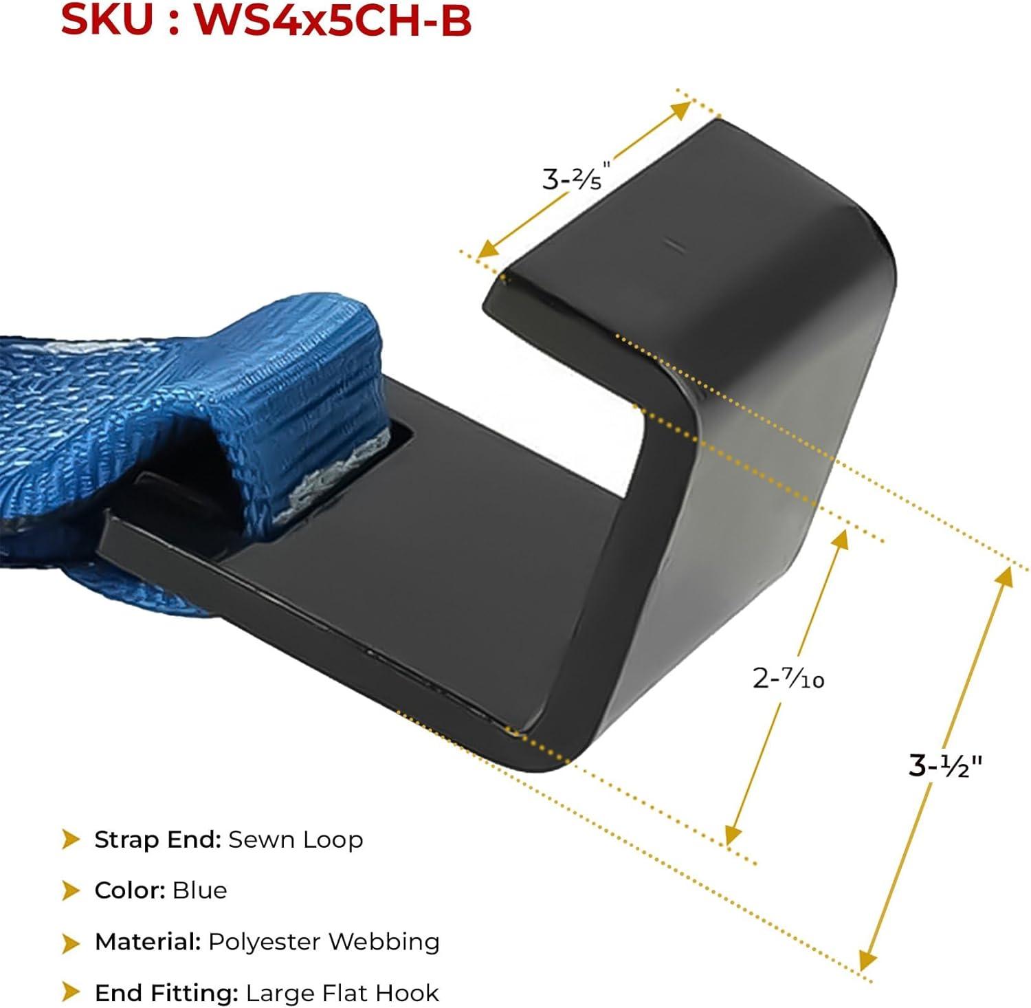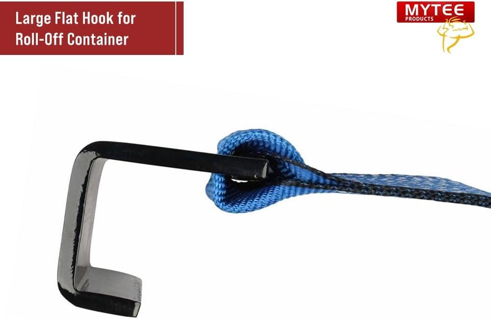 Mytee Products (10 Pack) 4" x 5' Roll Off Container Yellow Winch Strap w/Large Flat Hook for Roll Off Truck, 5,400 lbs Working Load Limit(Blue)