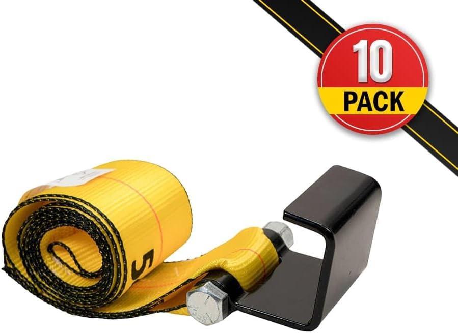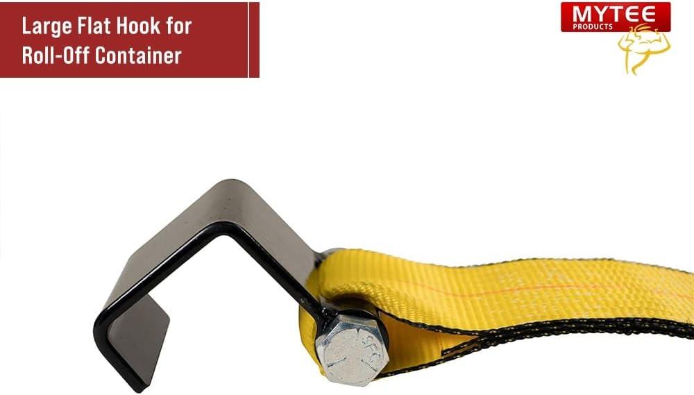 Mytee Products (10 Pack) 4" x 5' Roll Off Container Yellow Winch Strap w/Large Flat Hook for Roll Off Truck, 5,400 lbs Working Load Limit(Bolt on Yellow)