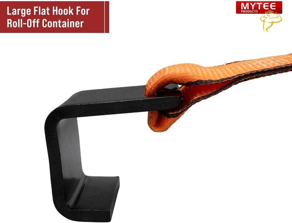 Mytee Products (10 Pack) 4″ x 5′ Roll Off Container Yellow Winch Strap w/Large Flat Hook for Roll Off Truck, 5,400 lbs Working Load Limit(Orange (High Abrasion))