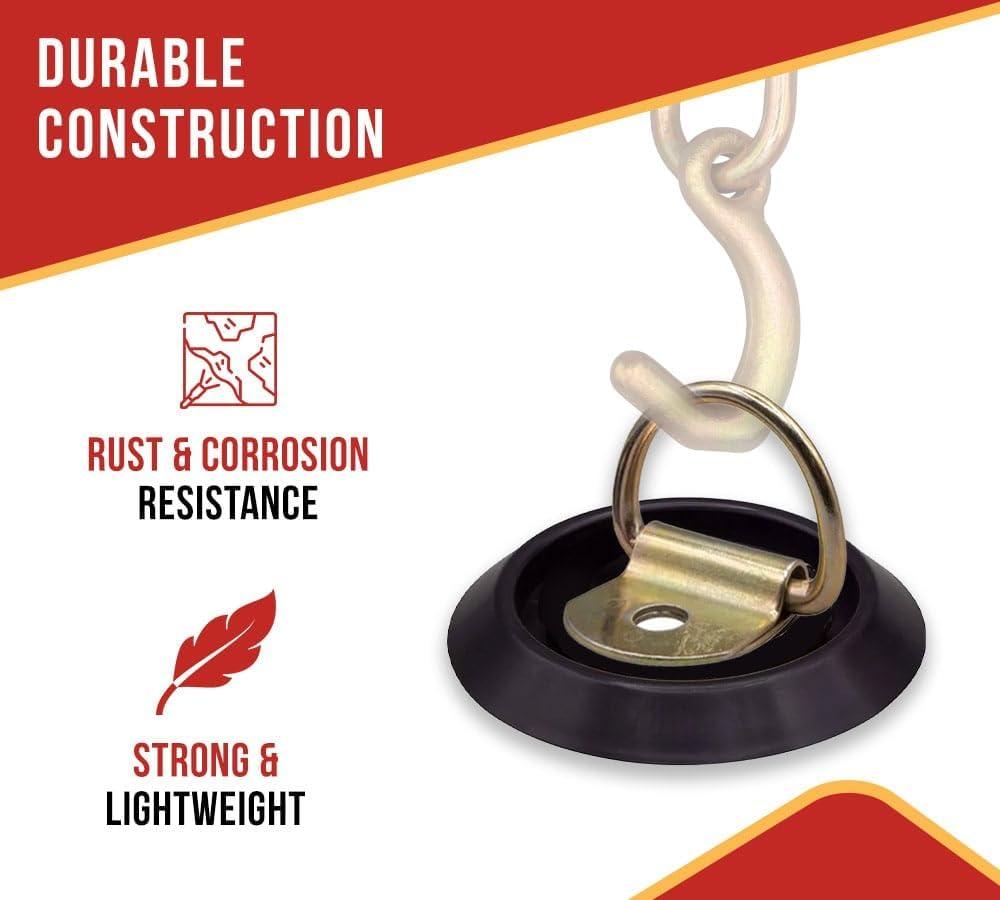 • Versatility: Mount these anchors to different surfaces, like plywood, metal, floor, and walls of your trailer, flatbed trailer, or truck. You can use S-hook or J-hook straps, bungee cords, chains, ropes, etc., for easy and secure attachment.