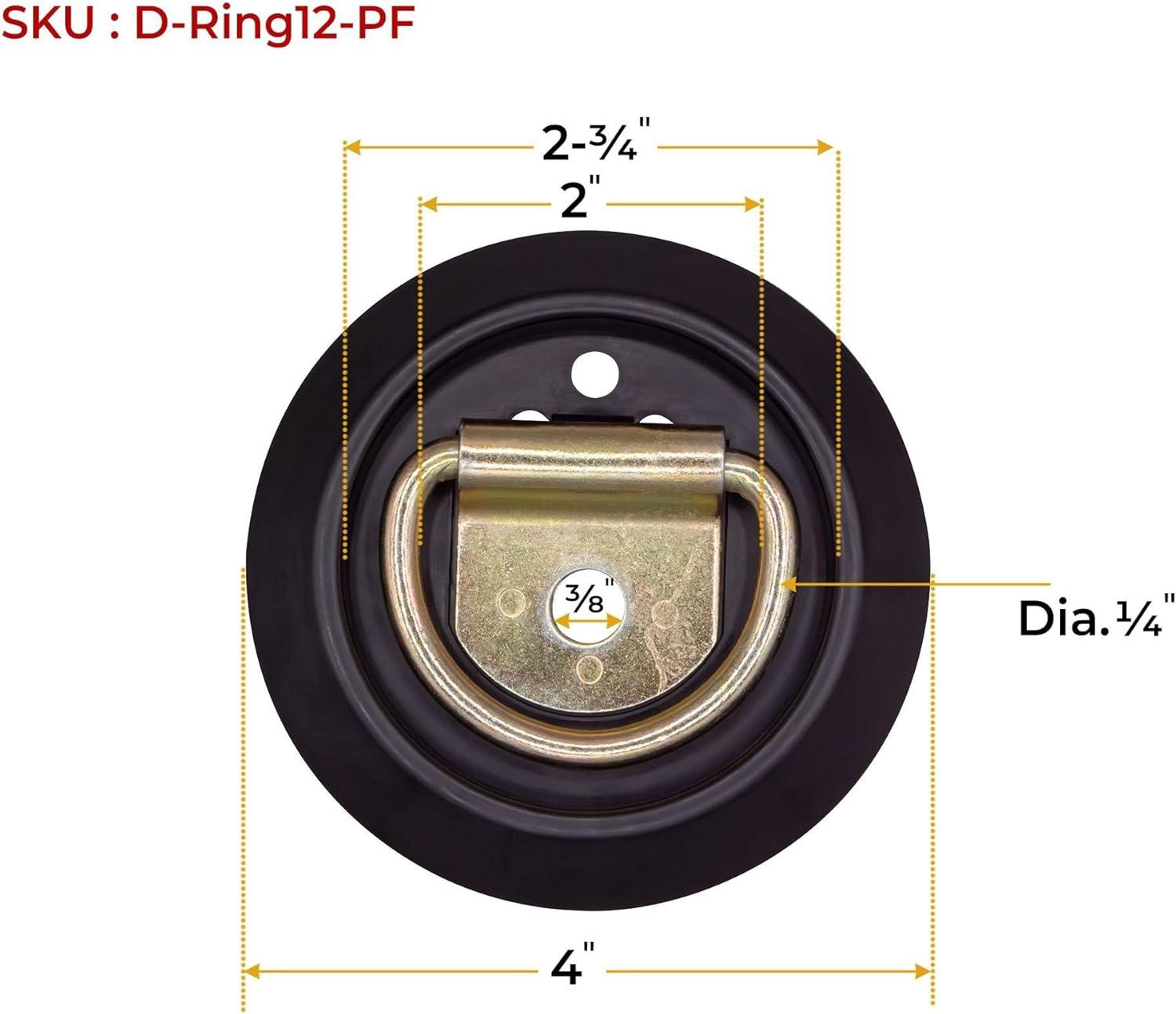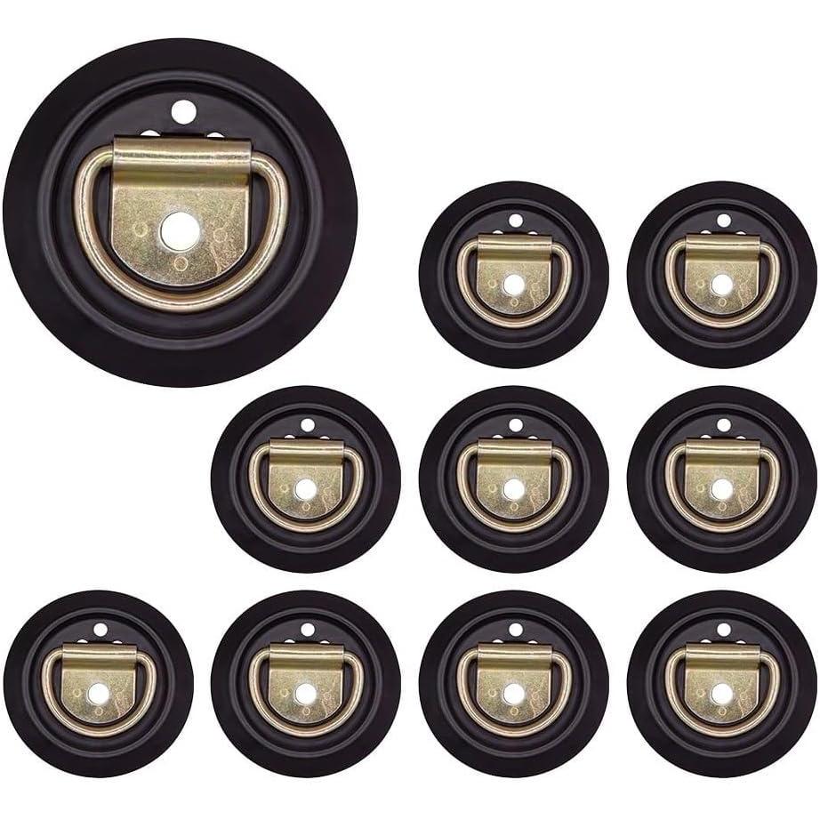 Mytee Products 10 Pack Flush Mount D-Ring Tie-Downs with Plastic Pan Fittings – 1000 Working Load Limit – Recessed D-Ring Tie Down Anchor for Flatbed Trailer Truck RV Cargo(4 – Pack)