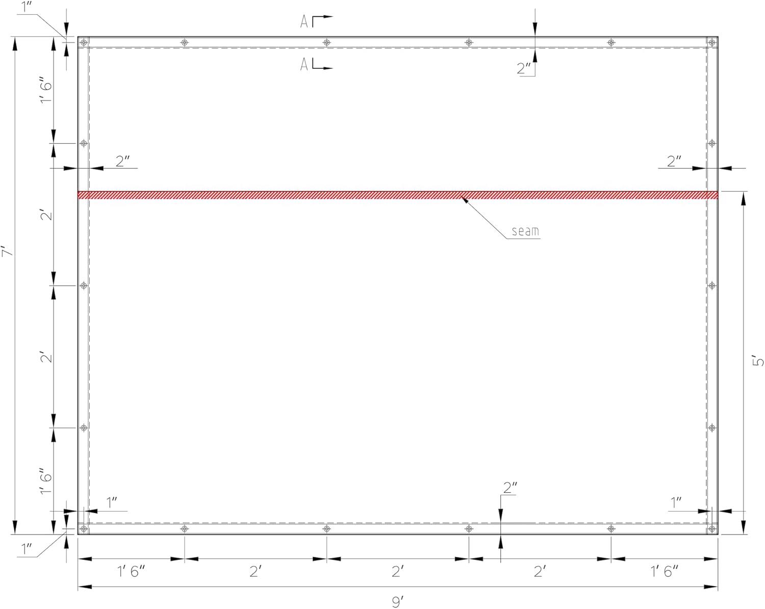 Grommets on all 4 sides, every 2 ft | Grommet Opening: 14.86 mm/0.58 in