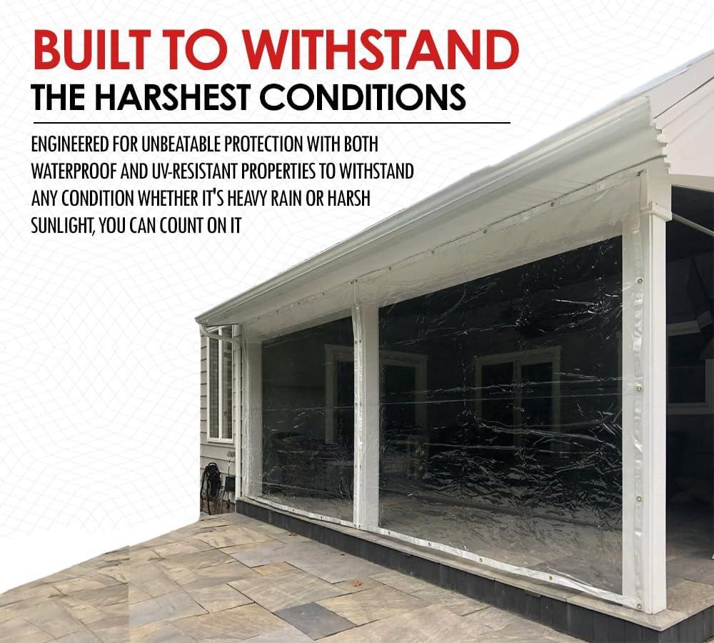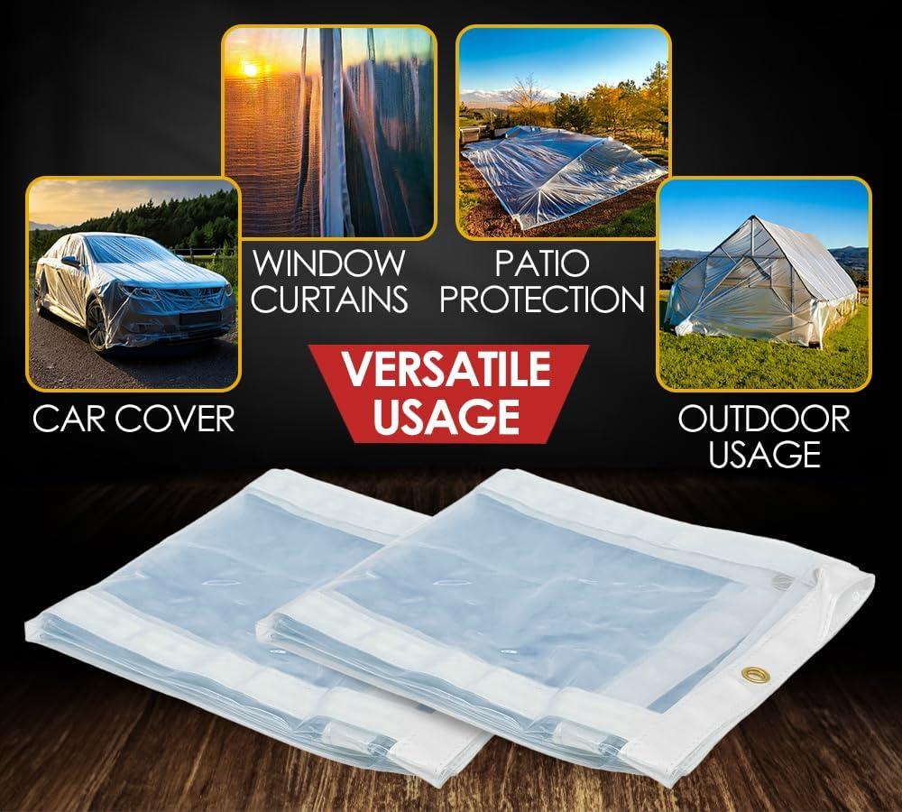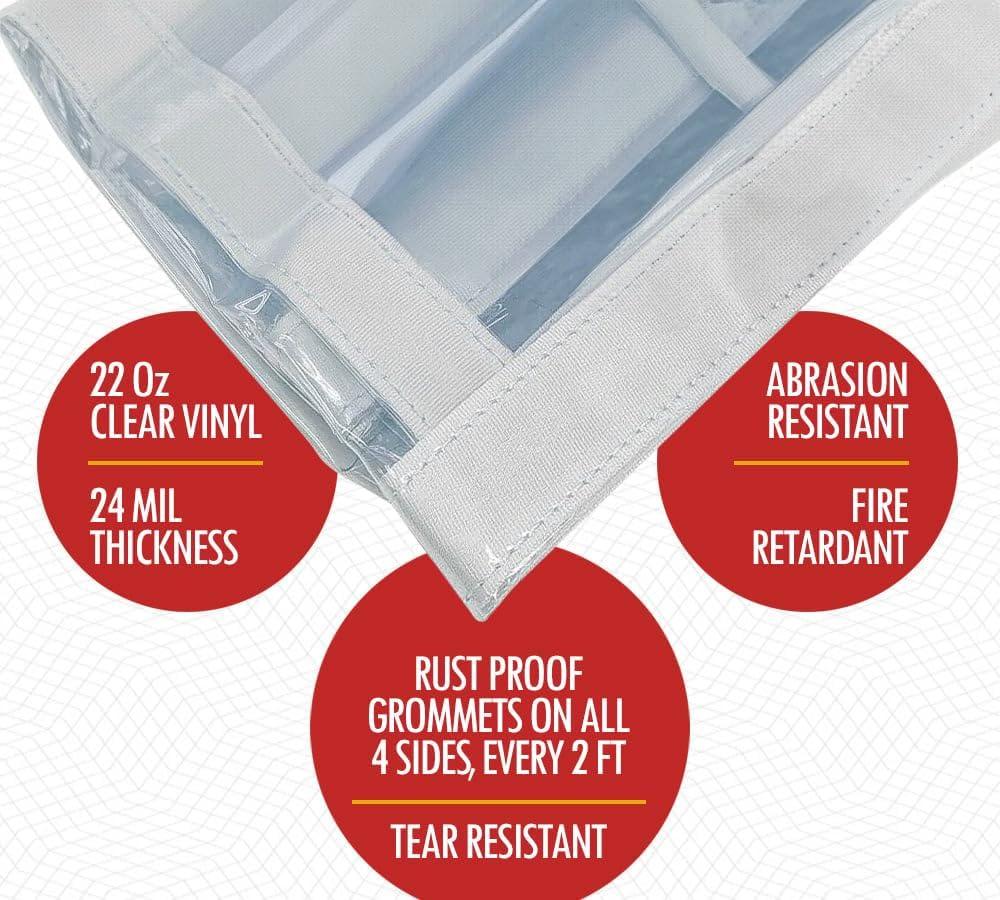 UV Resistant, Tear Resistant, Abrasion Resistant, Optically Clear || All our Clear Vinyl tarps are hand made and cut-size is going to differ from the listed size by up to 2% or 6″ due to different fabric stretching and machines involved in the Production