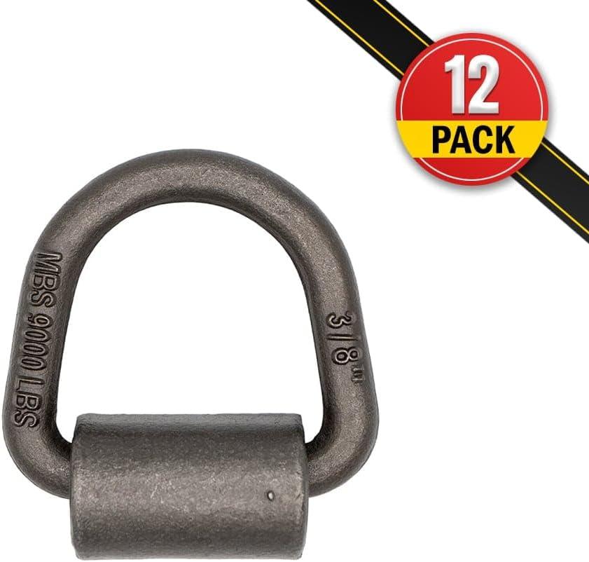 Mytee Products (12 Pack) 3/8" Heavy Duty Weld On D Ring - 9,000 LBS Breaking Strength Tie Down Anchor for Truck Bed - Forged D Rings for Trailer(12 - Pack)