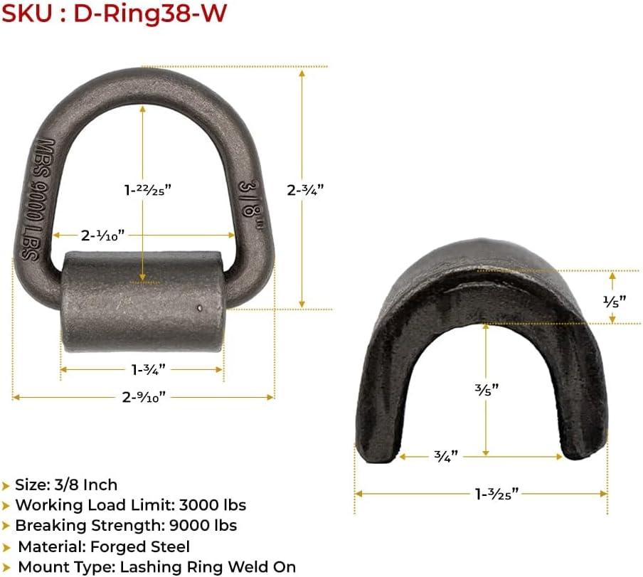 Mytee Products (12 Pack) 3/8″ Heavy Duty Weld On D Ring – 9,000 LBS Breaking Strength Tie Down Anchor for Truck Bed – Forged D Rings for Trailer(8 – Pack)