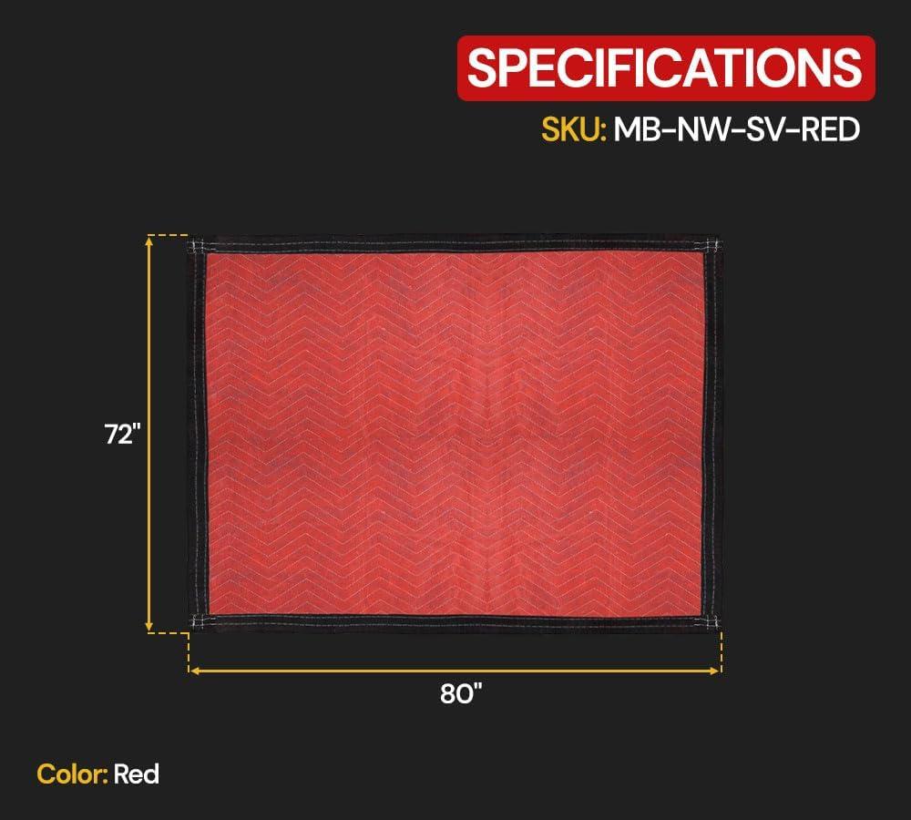 Mytee Products 12 Pack 80" x 72" Black Moving Blankets (40 lb/dz Weight) - Non-Woven Polyester Furniture Moving Pads for Protection in Moving or Storage(Red)