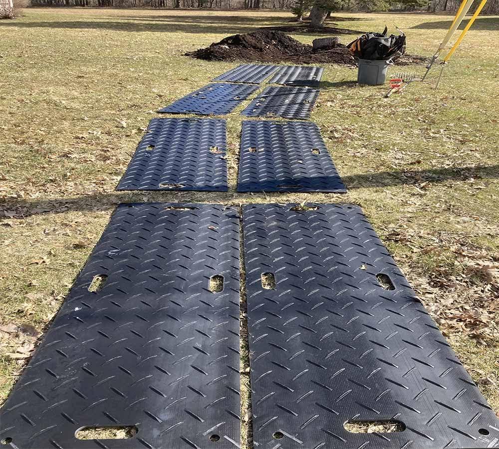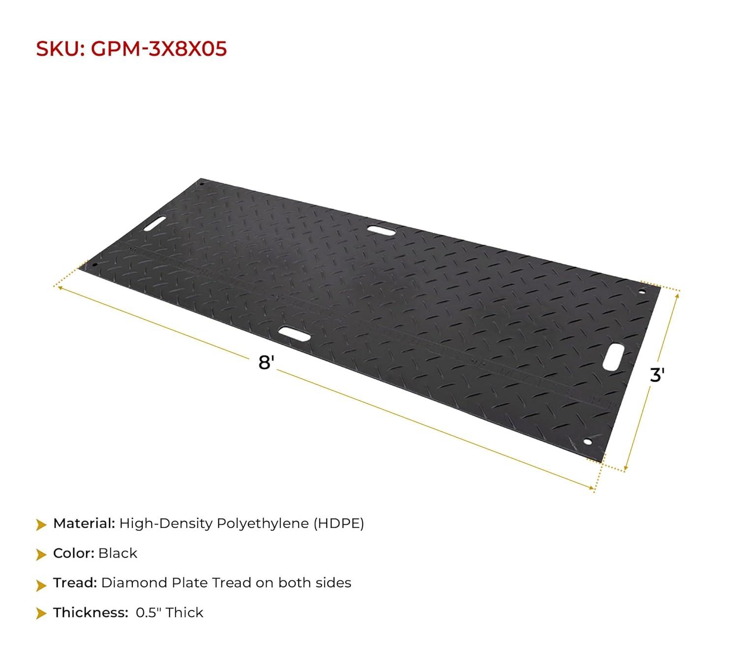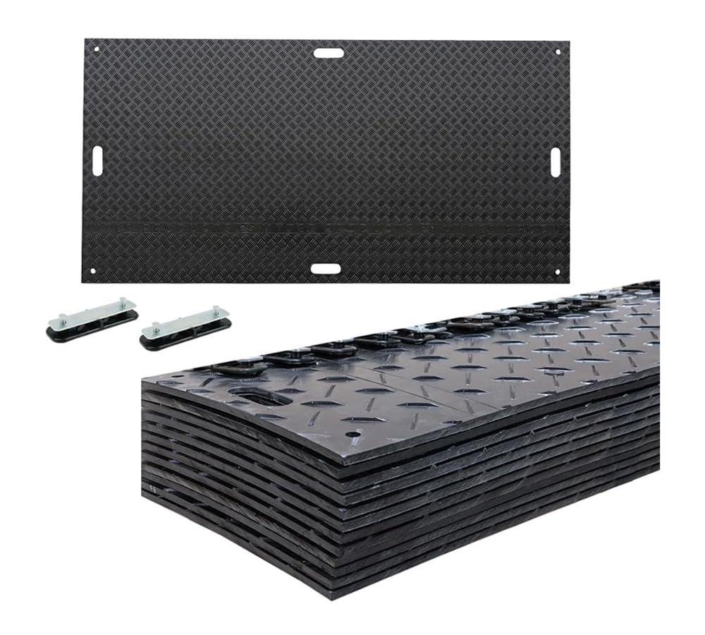 ✔ 12 Pcs Ground Protection Mats – Black, 3ft (W) x 8ft (L), 22 Pcs Single Connectors for Ground Protection Mats
