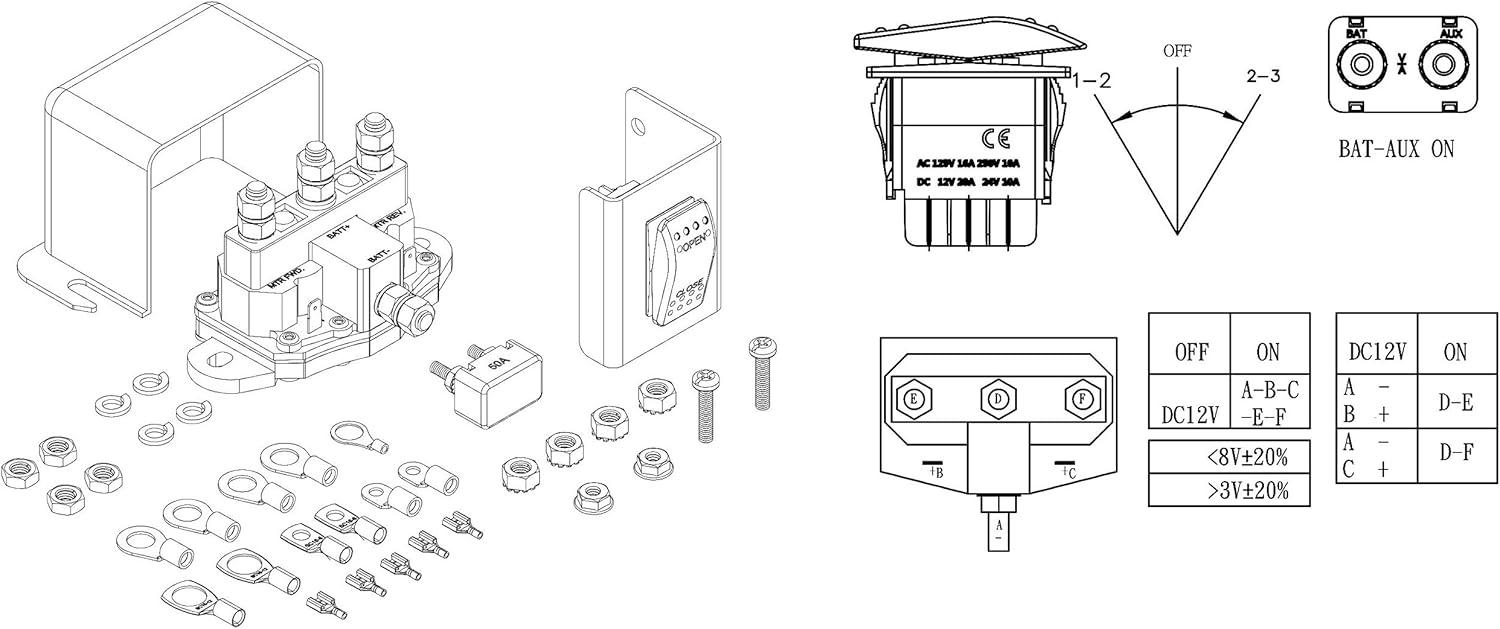 - Rocker Style Switch, Weatherproof Solenoid Terminal, Terminal Rings, Mounting Plates, Mounting Hardware
