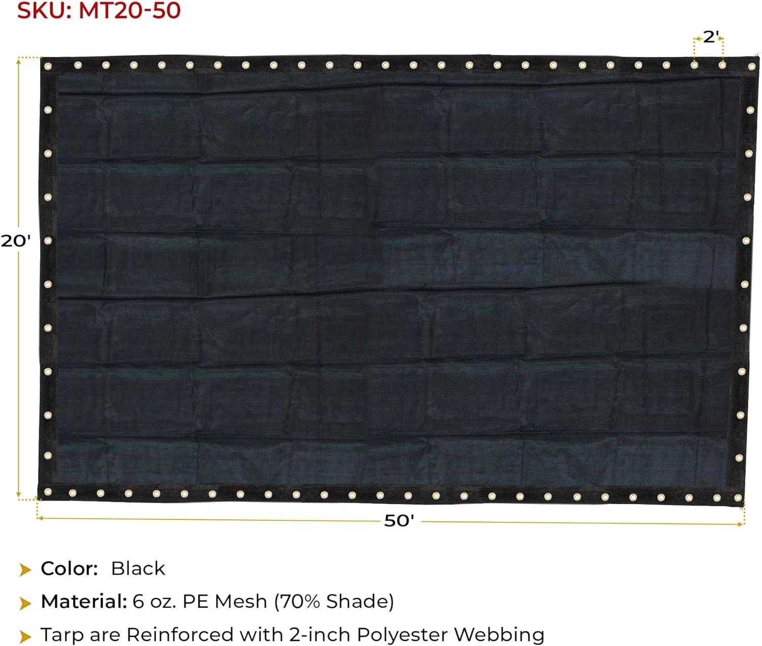 Mytee Products 12'x20' Black 70% Shade Mesh Tarp for Outdoor w/Grommets - 6 Oz Extra Durable Heavy Duty Mesh Tarps for Dump Truck, Rolloff Trucks - Mesh Shade Net Cloth for Sun, Plant, Patio(Black)