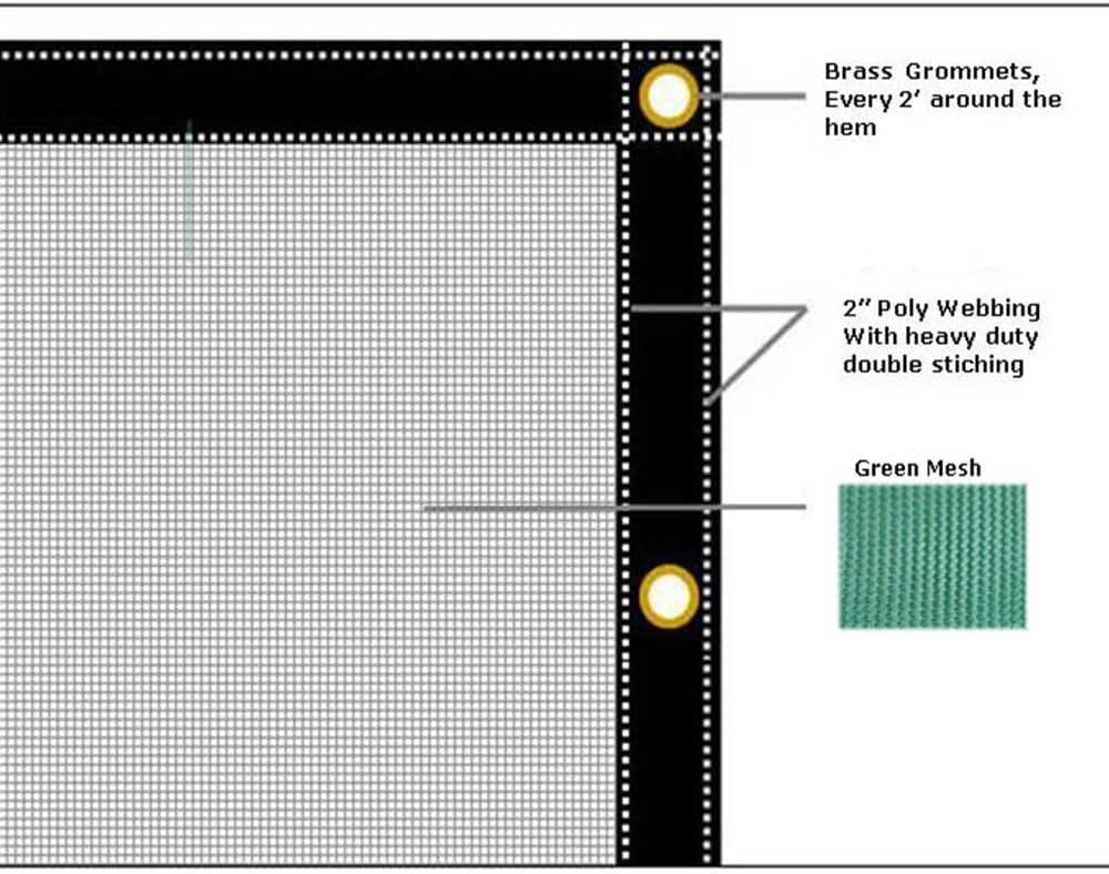 Easy to Install – Unfold the Mesh Tarp completely & you may use the brass grommets to secure the mesh tarp by use of zip ties, rubber ties, or any form of secure tie down you see fit. Please make sure all points are secure