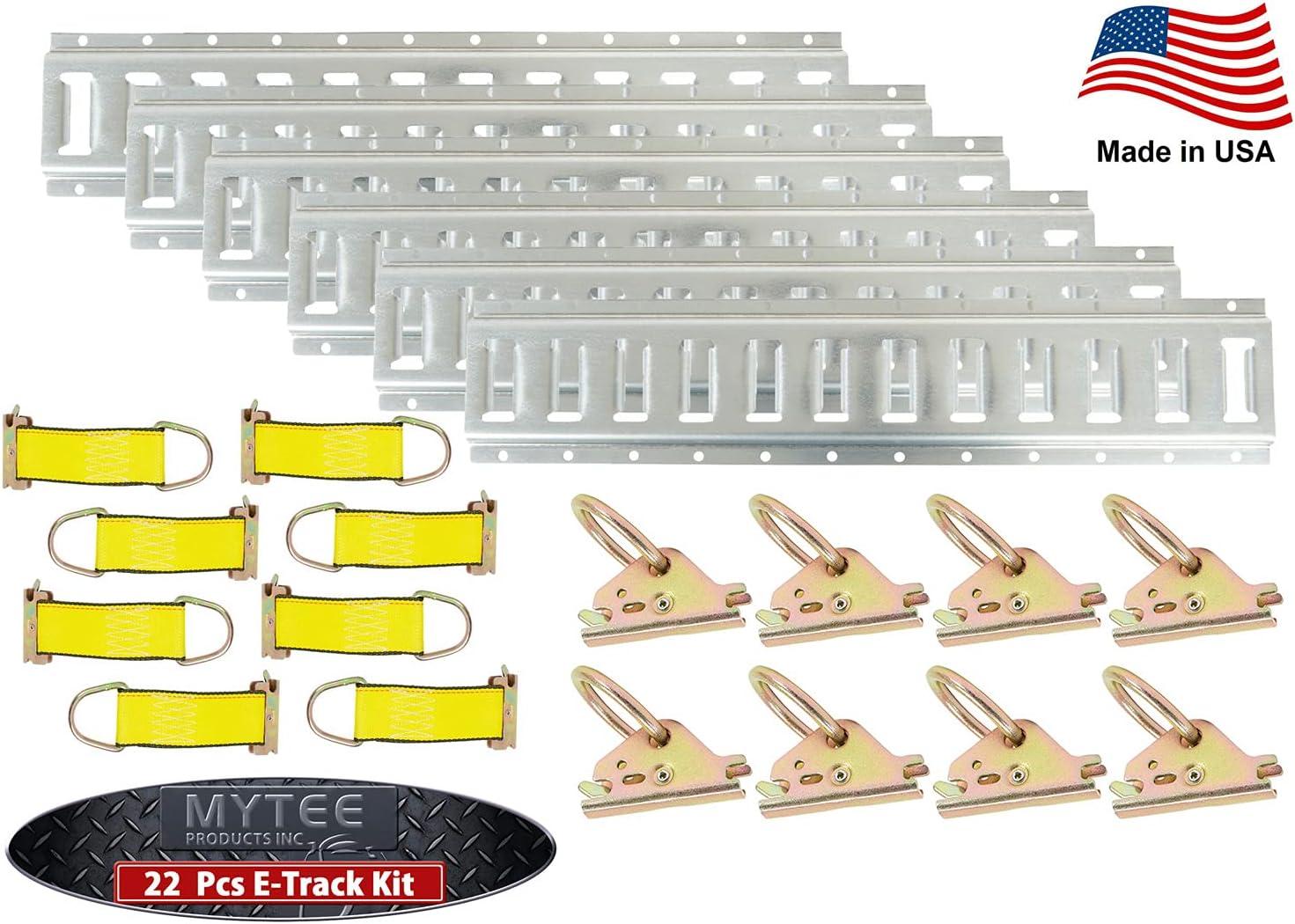 Mytee Products 14 Pieces E-Track Tie Down Kit - 4 Horizontal 5' E Track Rails, 2 Etrack Ratchet Straps 2" x 12', 4 O Rings, 4 Rope Tie Offs - Heavy Duty E Track Accessories for Enclosed Trailer(22 Pieces)