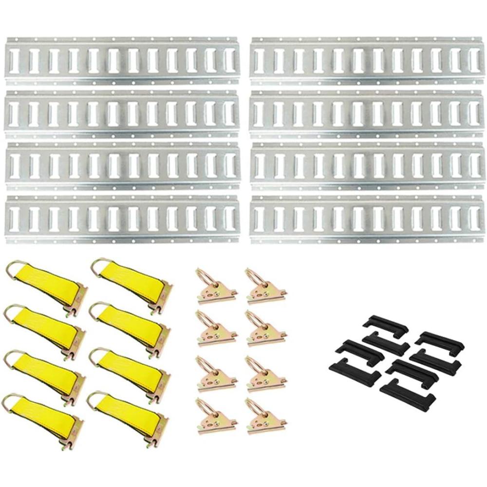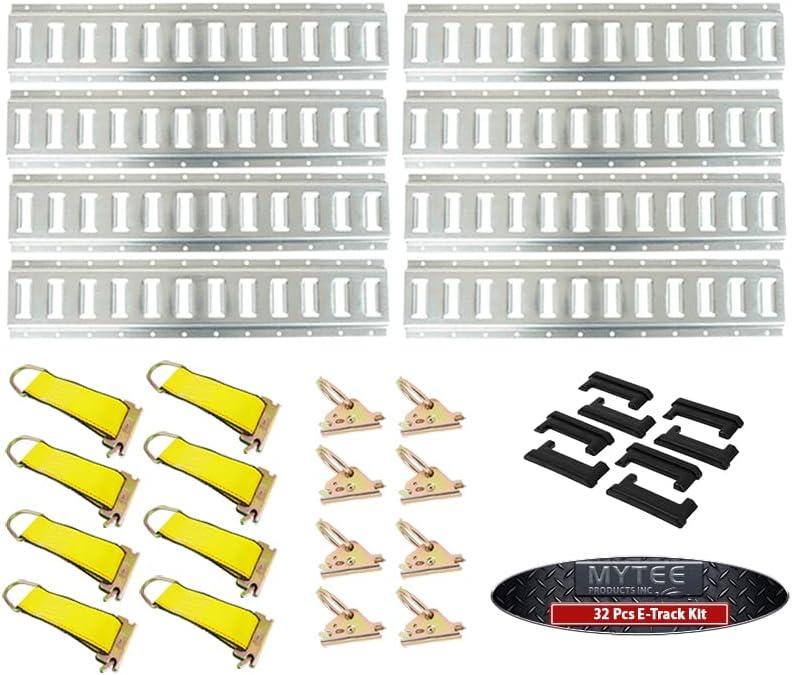 Mytee Products 14 Pieces E-Track Tie Down Kit - 4 Horizontal 5' E Track Rails, 2 Etrack Ratchet Straps 2" x 12', 4 O Rings, 4 Rope Tie Offs - Heavy Duty E Track Accessories for Enclosed Trailer(32 Pieces)