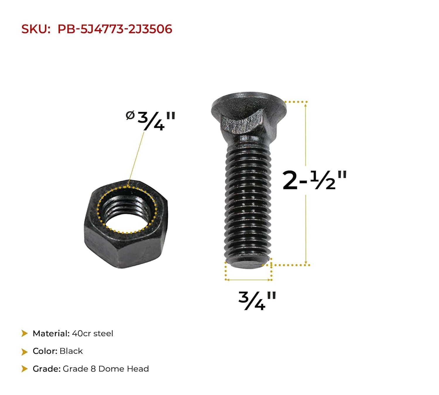 - Size: With a 3/4″ x 2-1/2″ cutting-edge bolt and a 3/4″ hex nut, our set is precisely designed to meet your cutting-edge needs.