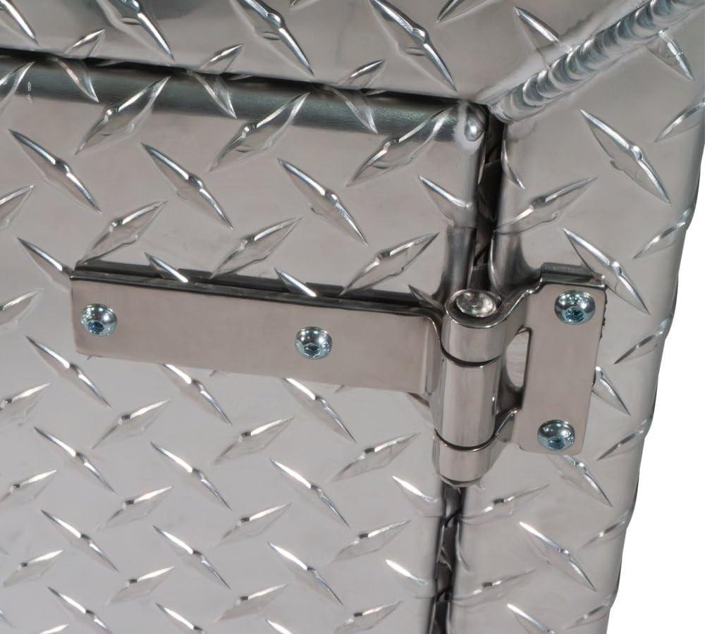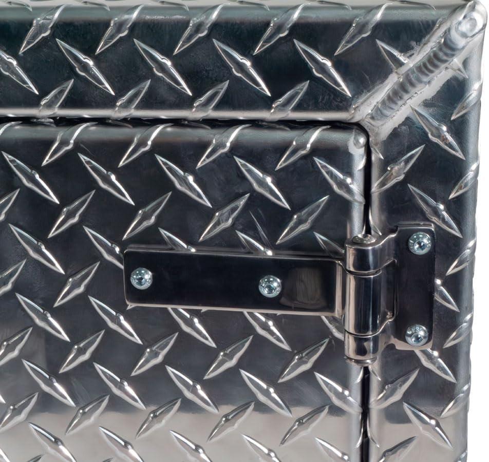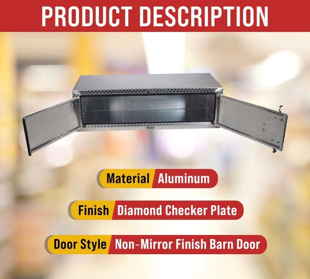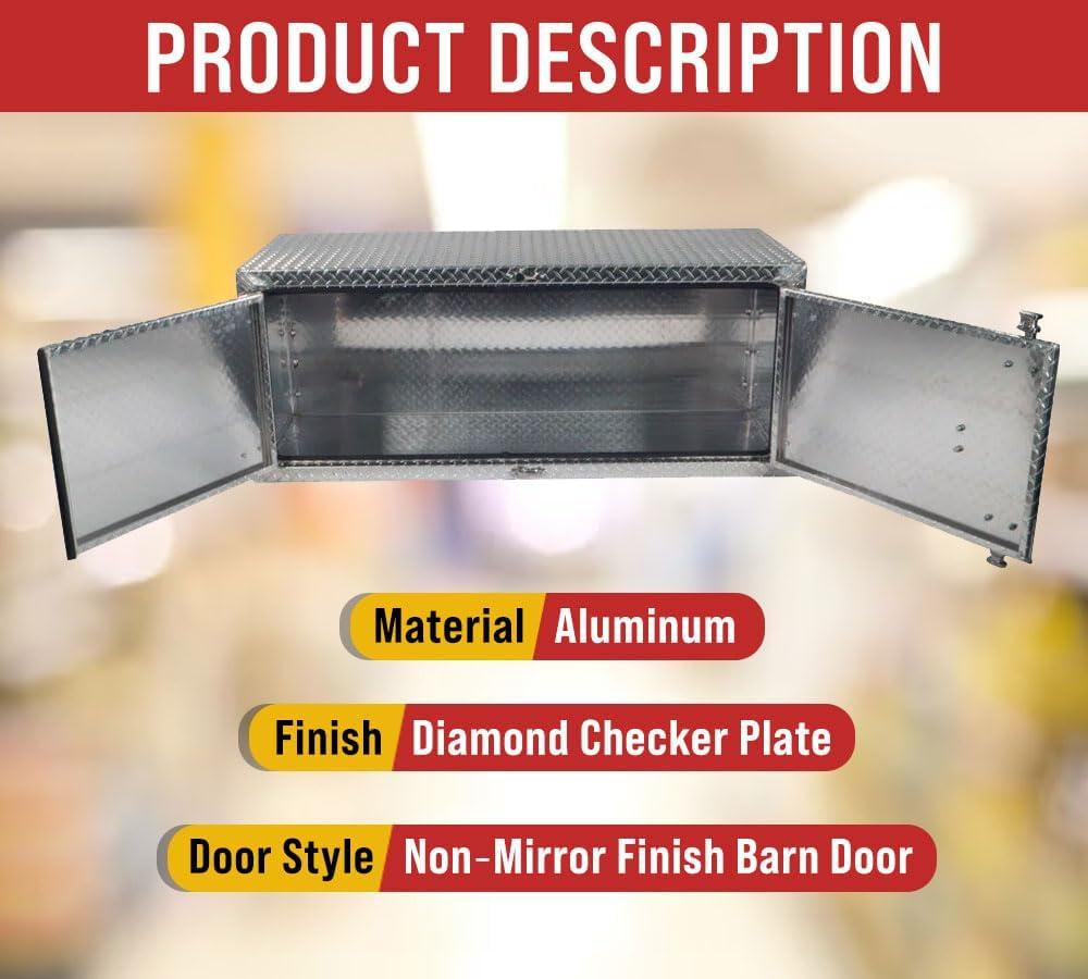 - Lightweight Aluminum Material: Our trailer toolbox is made from diamond checker plate aluminum with edges welded and reinforced. We have added heavy-duty stainless steel hinges on the double door to protect it from corrosion and other environmental elements. It gives strength while ensuring the free movement of the doors. The trailer box is strong enough to handle the wear and tear of the roads.