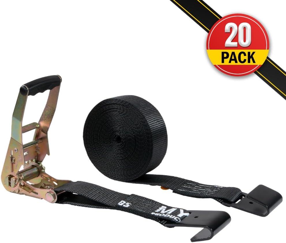Mytee Products 2 inch x 27′ Heavy Duty Tie-Down Ratchet Straps w/Flat Hook – 10,000 lbs Breaking Strength – Wide Handle Flat Hook Ratchet Straps for Cargo, Flatbed Trailers, Pickup Trucks(Black)