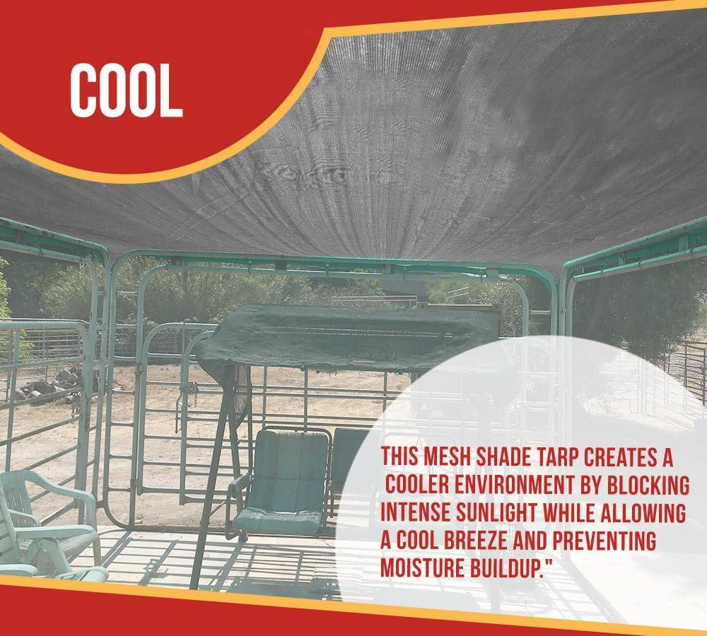• COOL: This mesh shade tarp can be used to create a cooler environment. It can block out intense, hot direct sunlight while letting in a cool breeze. The breathable material prevents moisture and condensation from building up under the tarp.