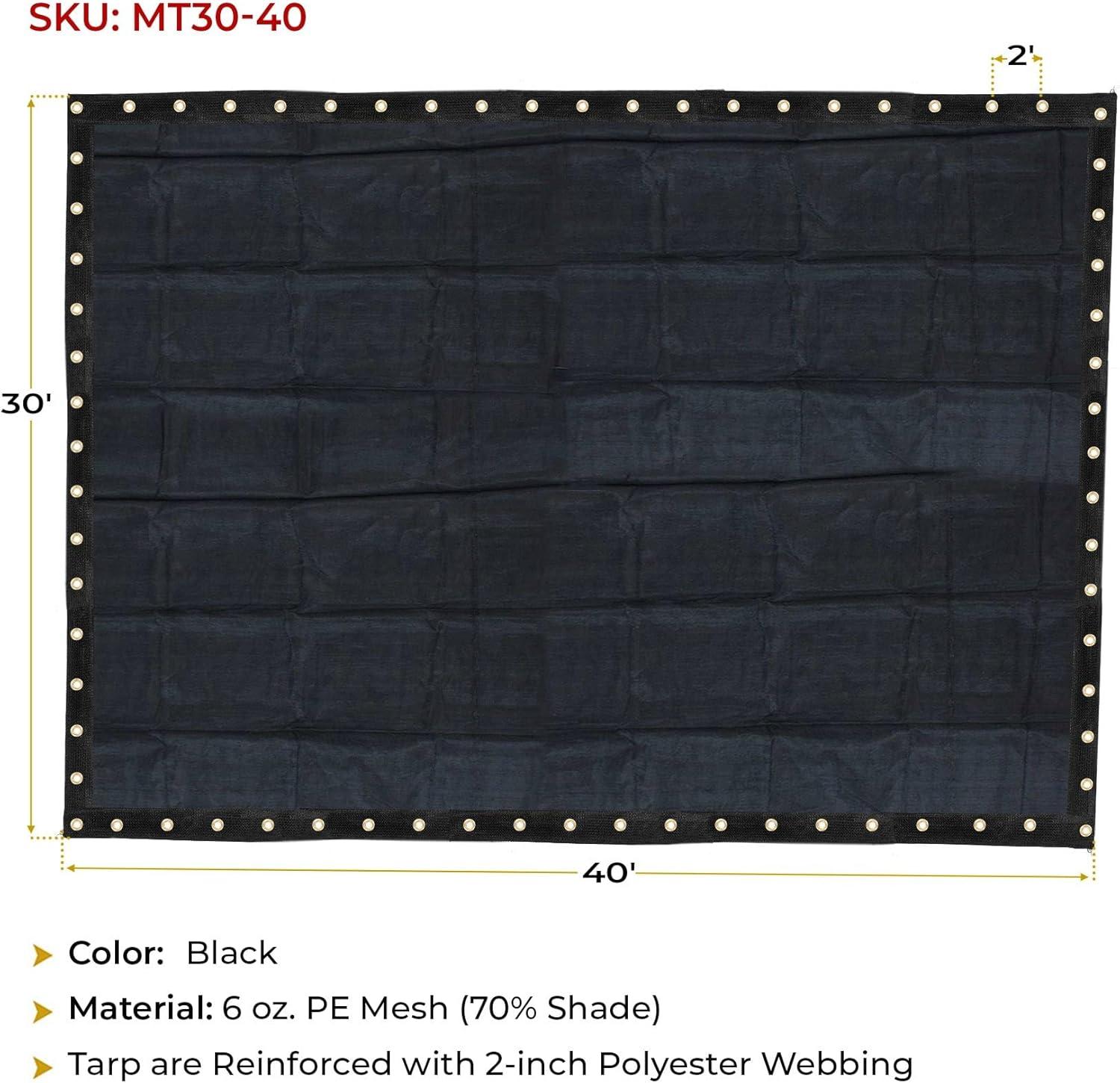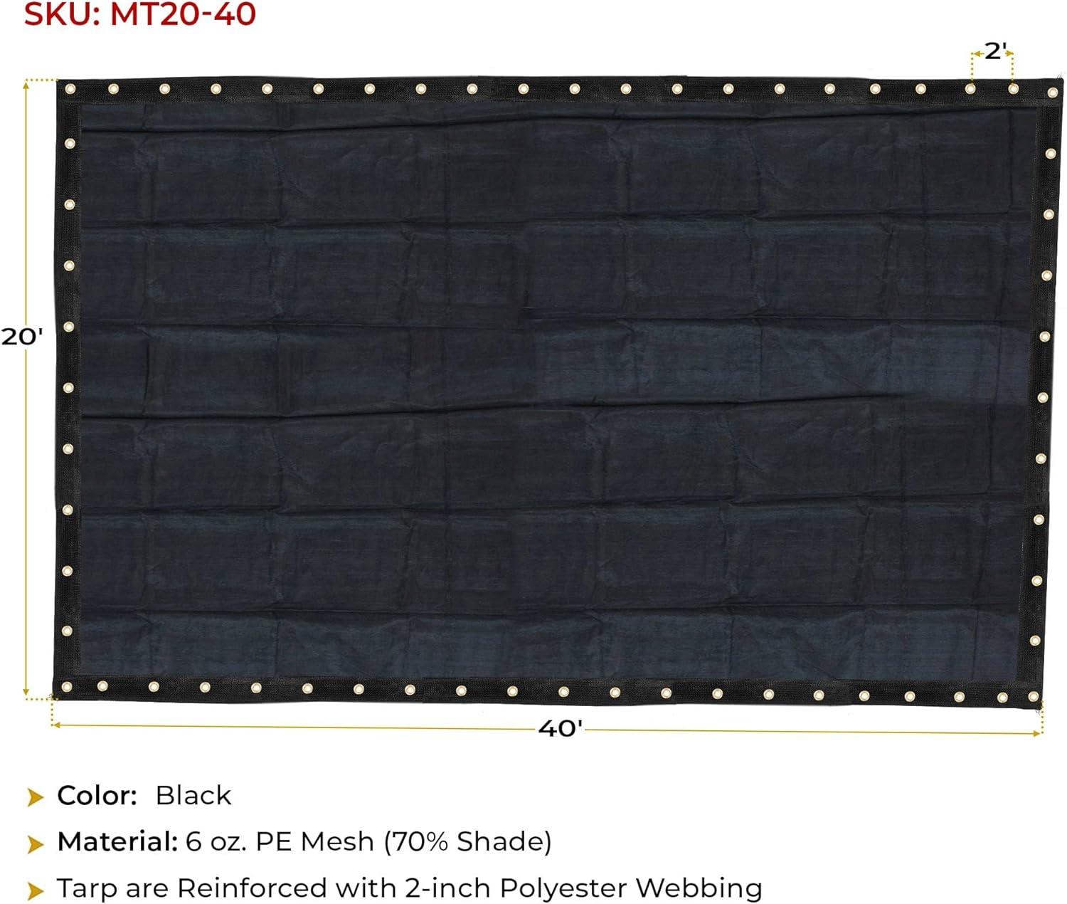 Mytee Products (2 Pack) 12’x26′ Black 70% Shade Mesh Tarp for Outdoor w/Grommets – 6 Oz Extra Durable Heavy Duty Mesh Tarps for Dump Truck, Rolloff Trucks – Netting Cloth Cover for Sun, Plant, Patio(Black)
