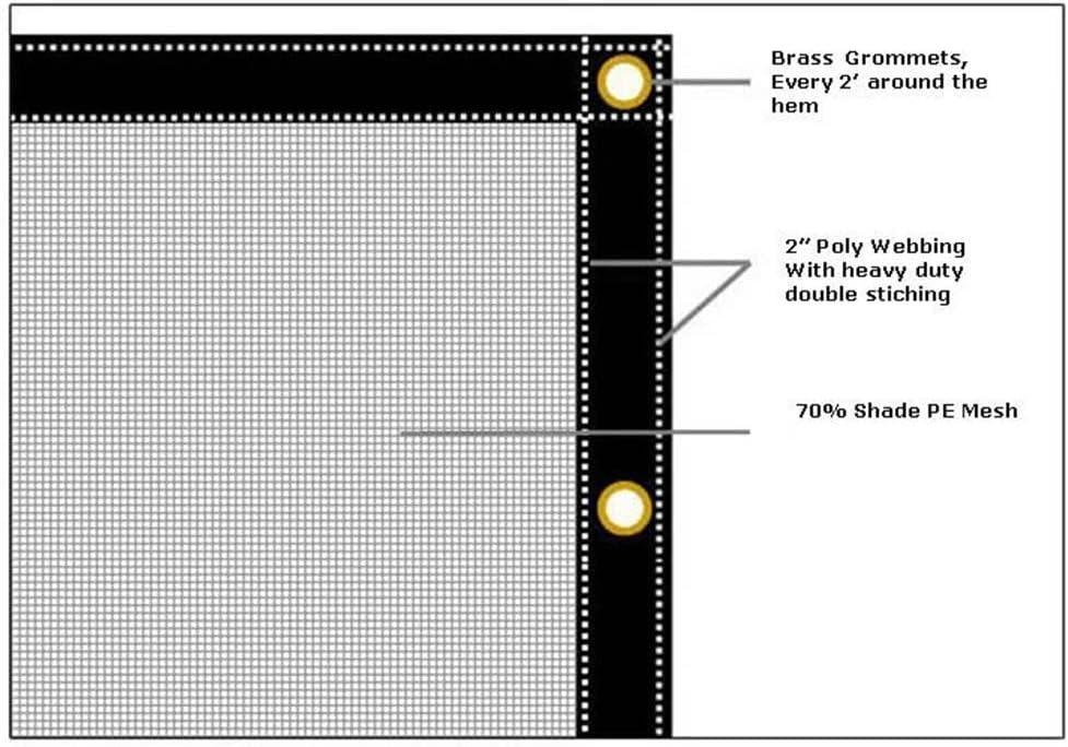 • EASY-TO-USE: Our mesh shade tarps have brass grommets spaced every two feet around the perimeter. The grommets are compatible with any ⅝ inch thick twine, cord, or wire rope you might use to set up or anchor the tarp.