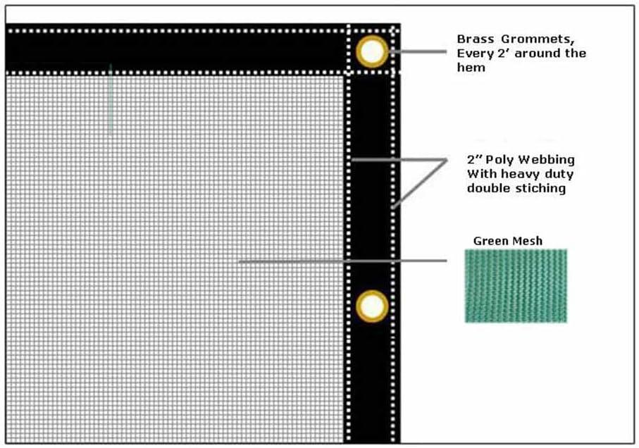 • EASY-TO-USE: Our mesh shade tarps have brass grommets spaced every two feet around the perimeter. The grommets are compatible with any ⅝ inch thick twine, cord, or wire rope you might use to set up or anchor the tarp.