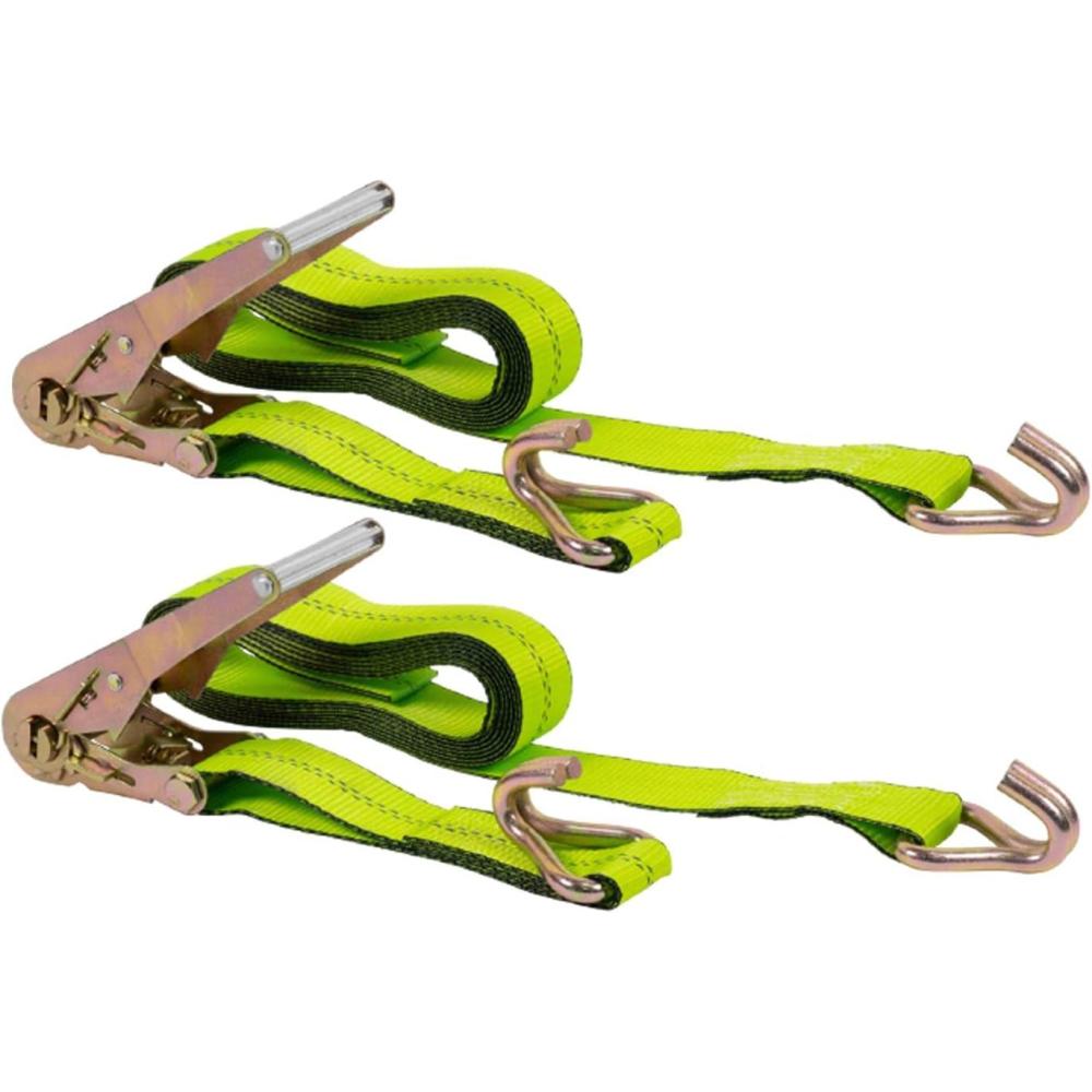 imageMytee Products 2 Pack 2 in x 15 ft Ratchet Straps with Wire Hook  Safety Green Flatbed Truck Tie Down 3333 lbs  WLLHI Viz Green