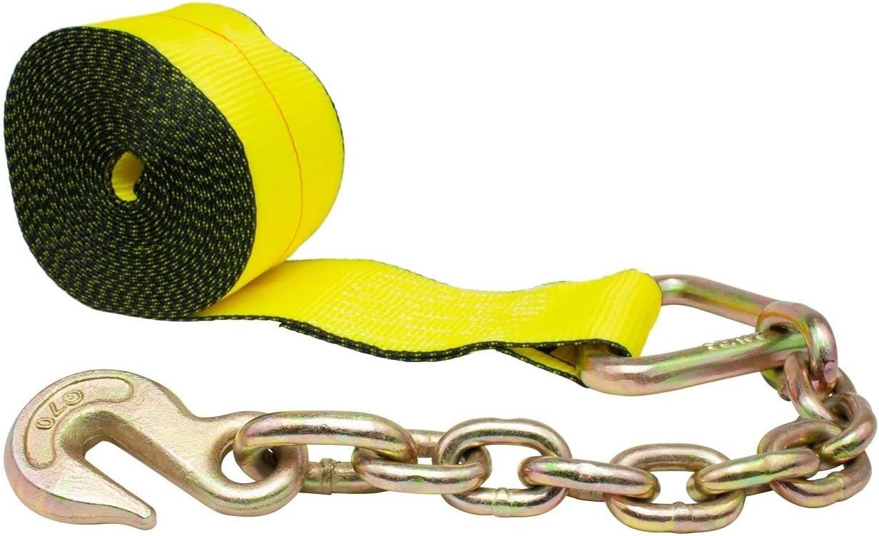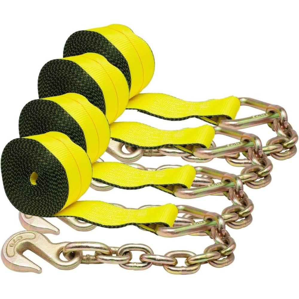 (2 Pack) Winch Strap – 4″ Webbing with Chain Anchor – 40 ft.