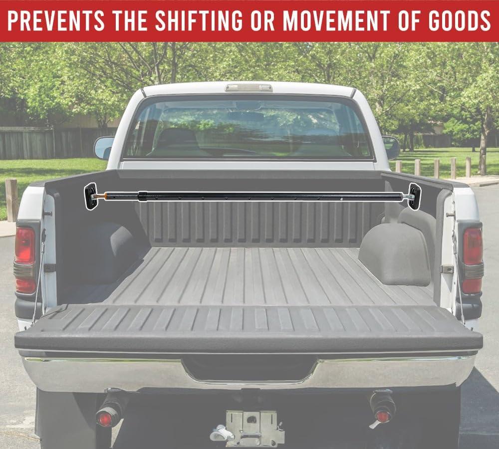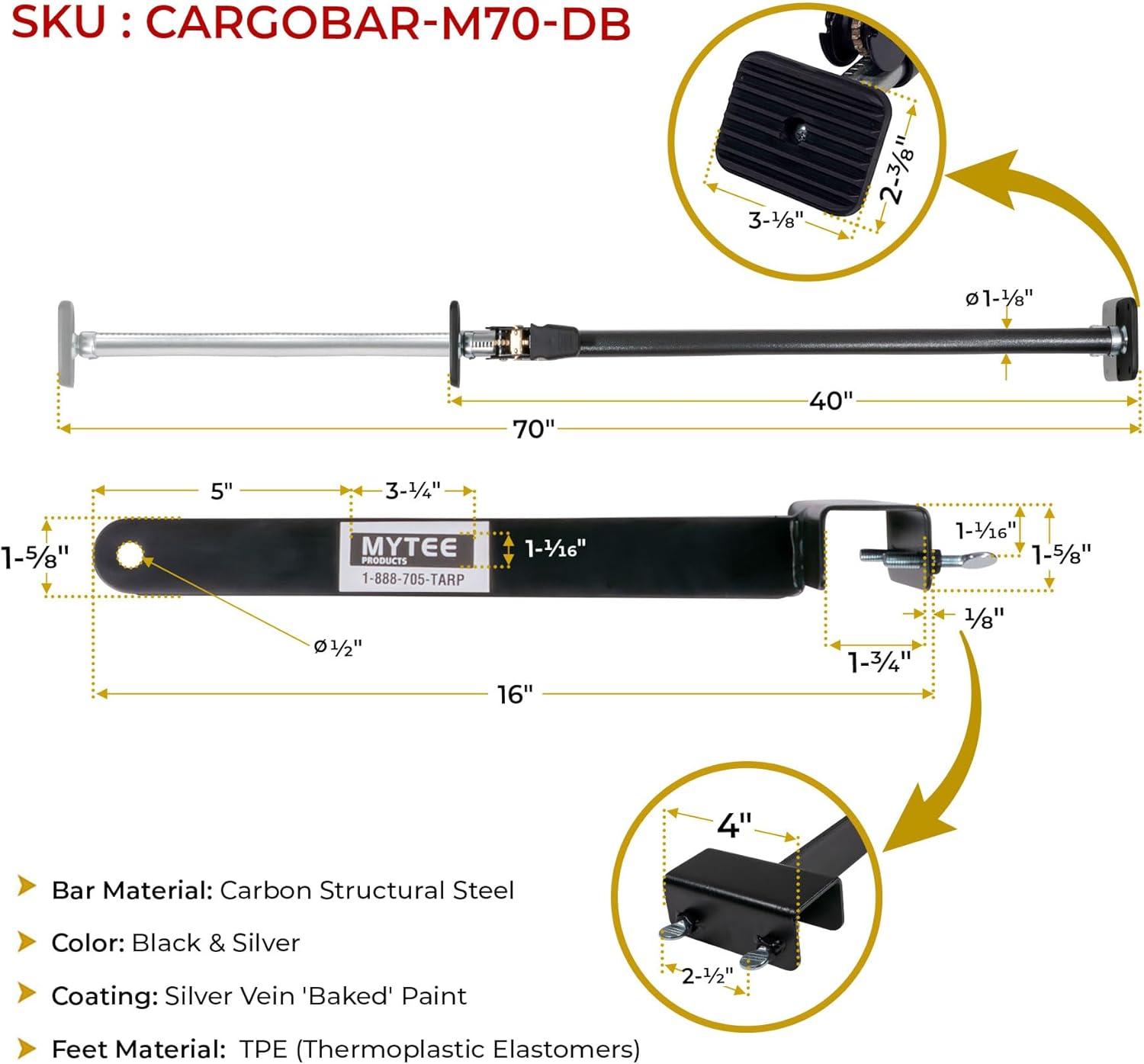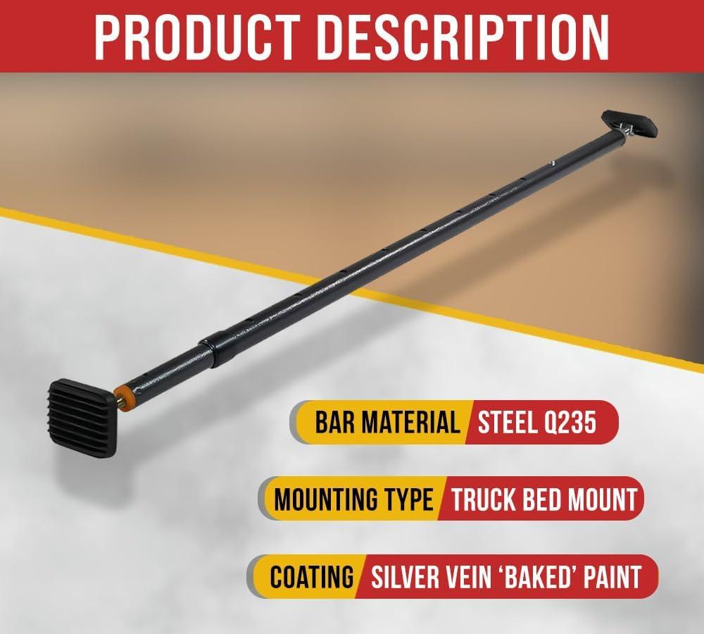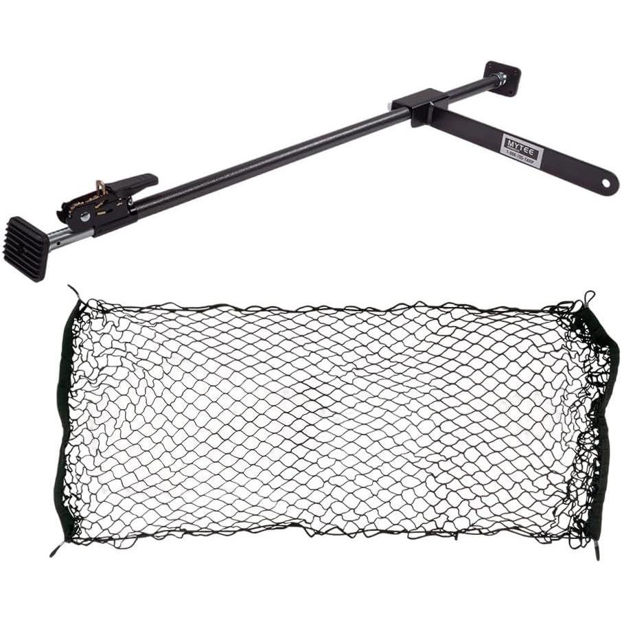 Mytee Products 2 Pack 40"-70" Ratcheting Cargo Bar for Pickup Truck Bed with 60"x24" Storage Net - Adjustable Load Lock Bars - Truck Bed Cargo Stabilizer Bar for Semi Trailers, SUV & Bed Divider(1 - Pack)