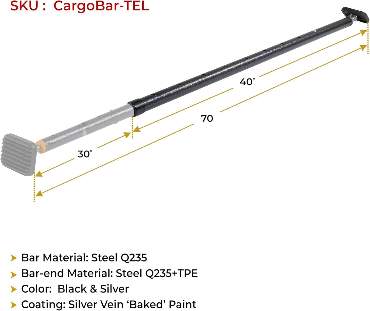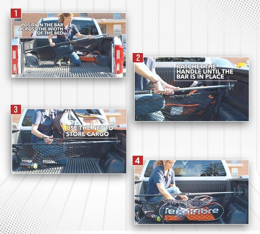 Mytee Products 2 Pack 40″-70″ Ratcheting Cargo Bar for Pickup Truck Bed with 60″x24″ Storage Net – Adjustable Load Lock Bars – Truck Bed Cargo Stabilizer Bar for Semi Trailers, SUV & Bed Divider(4 – Pack)