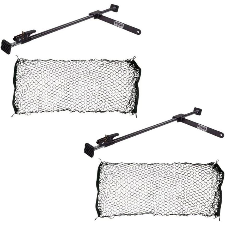 Mytee Products 2 Pack 40"-70" Ratcheting Cargo Bar for Pickup Truck Bed with 60"x24" Storage Net - Adjustable Load Lock Bars - Truck Bed Cargo Stabilizer Bar for Semi Trailers, SUV & Bed Divider(2 - Pack)