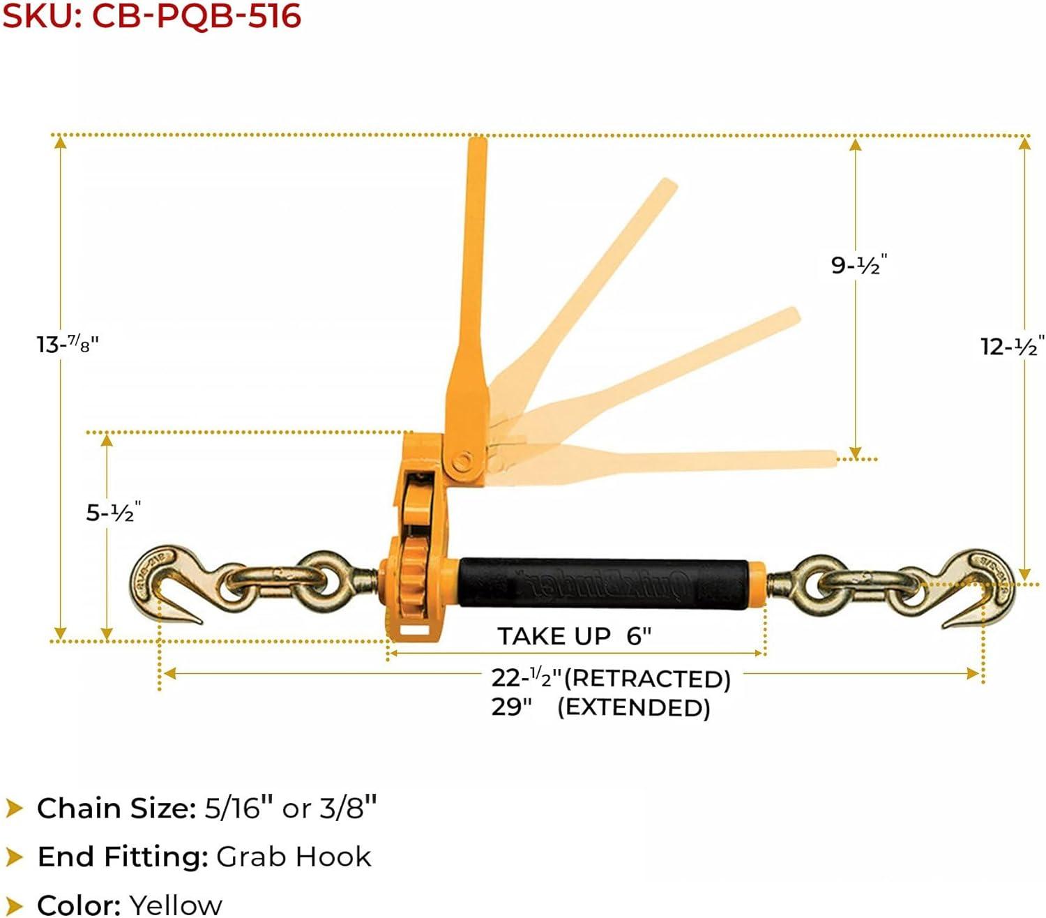 Mytee Products (2 Pack) 5/16-3/8 Peerless QuikBinder Tow Chain Ratchet Binder H5125-0658 Axle(8 – Pack)