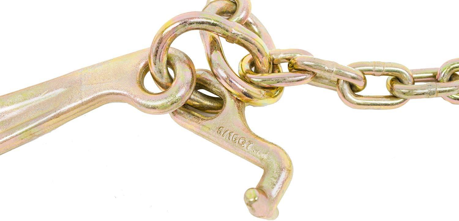 Mytee Products (2 Pack) 5/16” x 3′ G70 V-Chain Bridle w/ 8″ Medium J Hooks, T- Hook & J-Hook w/Grab Hooks 3′ Legs 4700 lbs WLL(2 ft legs w/ 8″ J Hook (2-Pack))