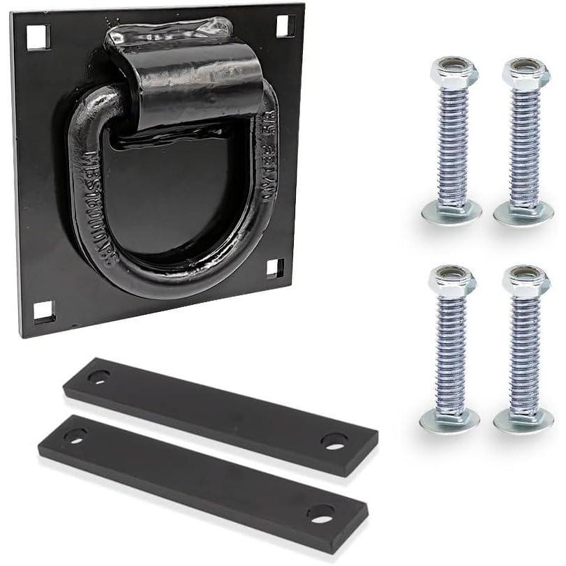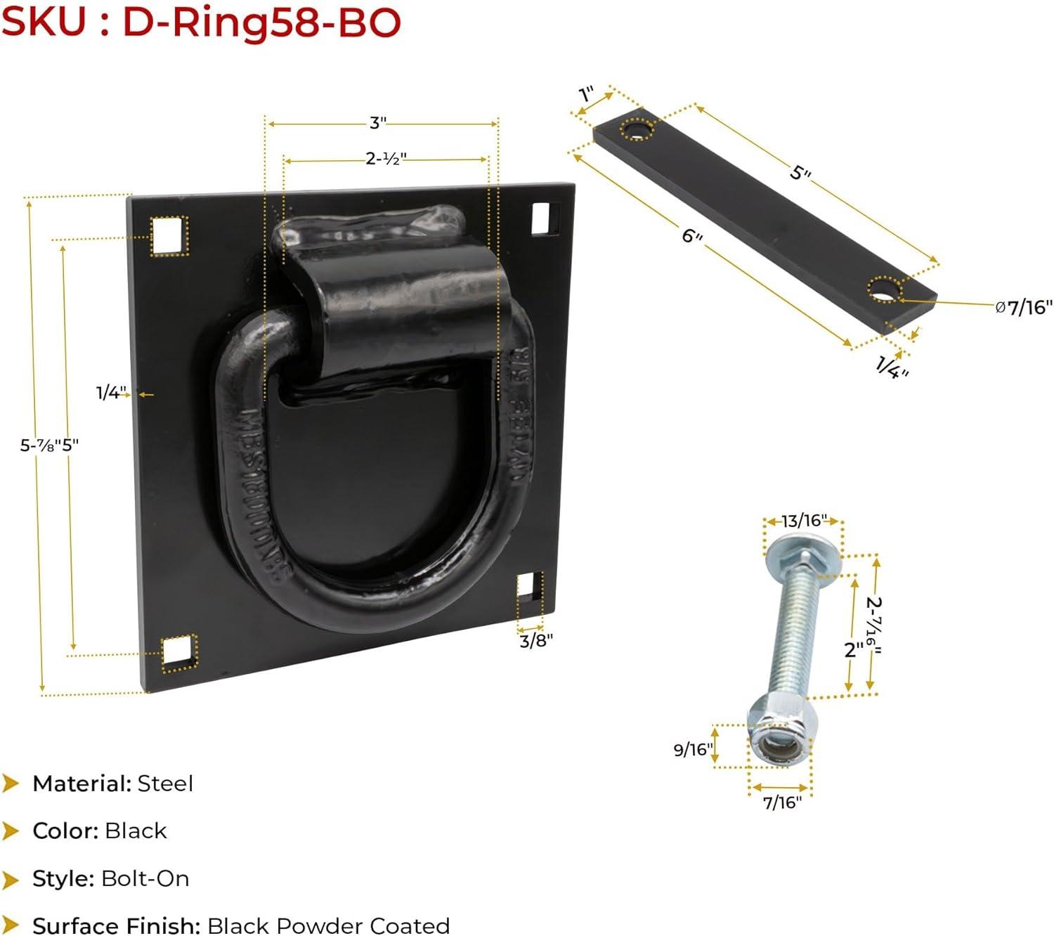 Mytee Products 2 Pack 5/8" Heavy Duty Bolt-On Forged D Ring for Trailers Trucks, Cargo Tie Downs - 18,000 Lbs Breaking Strength Black Powder Coated Steel(1 - Pack)