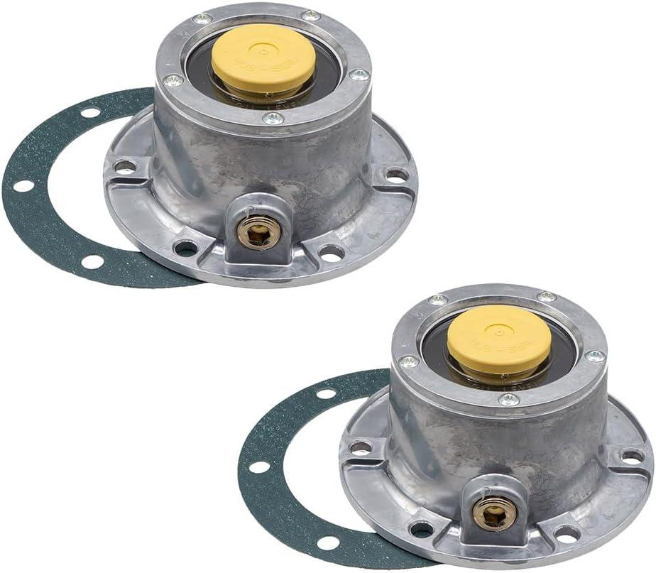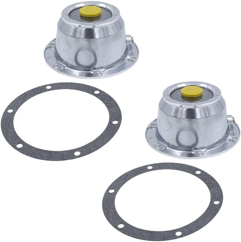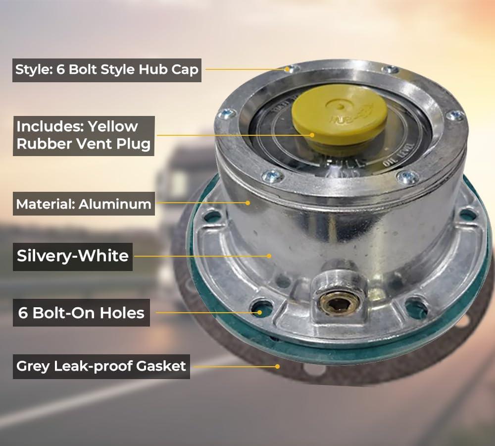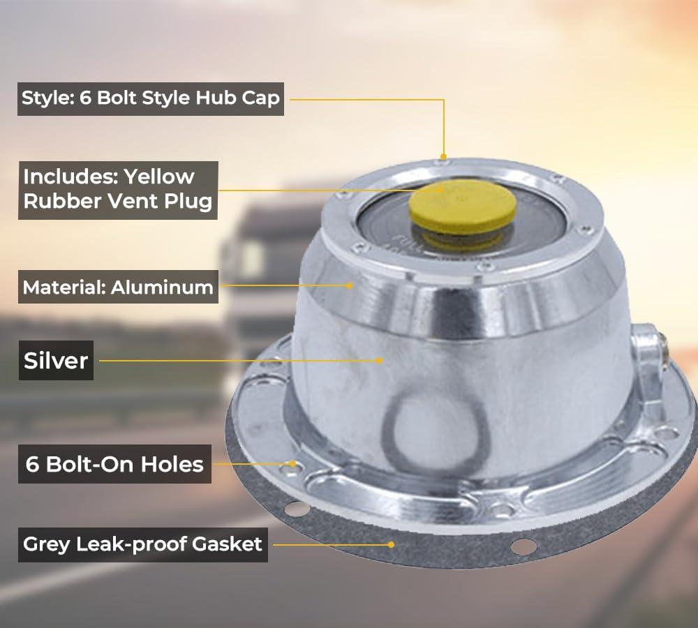 Mytee Products 2 Pack Aluminum Trailer Hub Cap with Gasket & Rubber Vent Plugs Compatible with Freightliner MT45 2010-6 Holes Hub Cap for Trailer Axle, Replaces 343-5111 SCR3435111 STM3435111(2 - Pack)