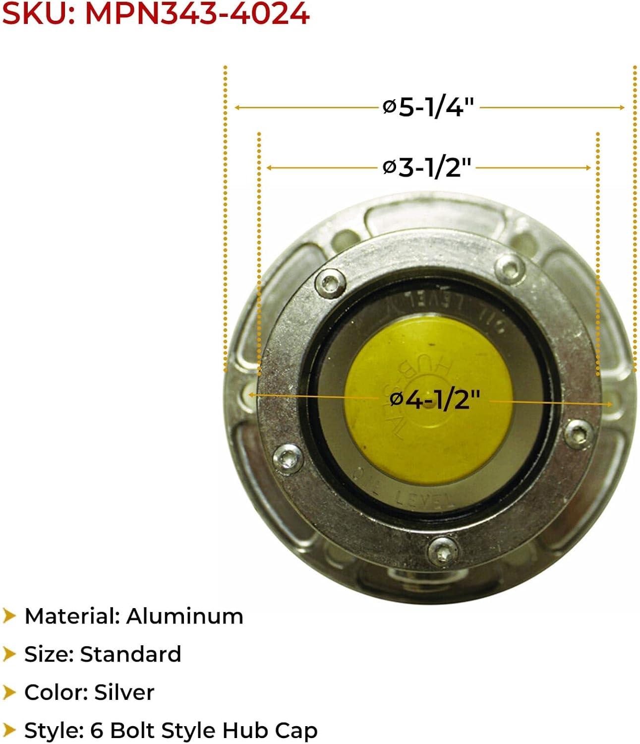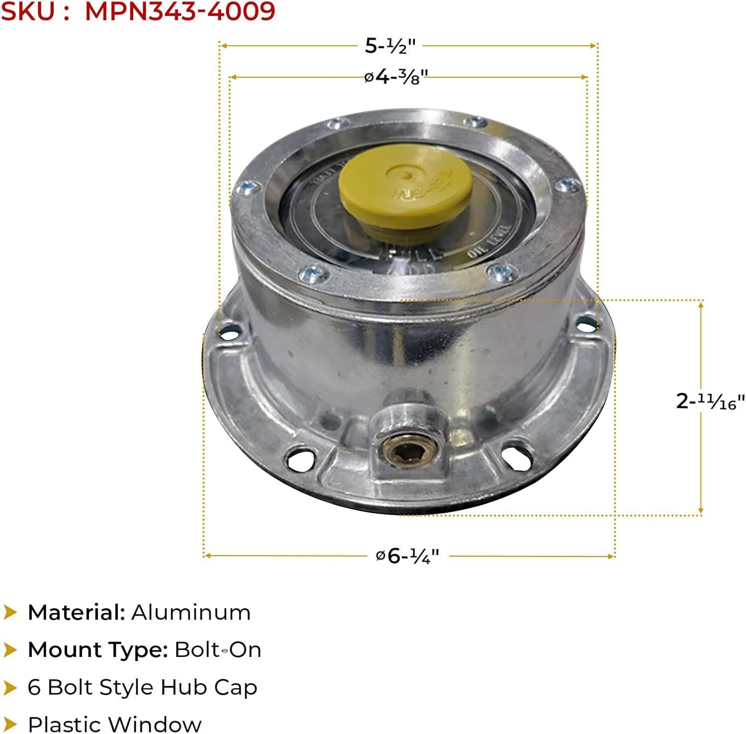 Mytee Products 2 Pack Aluminum Trailer Hub Cap with Gasket & Rubber Vent Plugs Compatible with Freightliner MT45 2010-6 Holes Hub Cap for Trailer Axle, Replaces 343-5111 SCR3435111 STM3435111(4 – Pack)