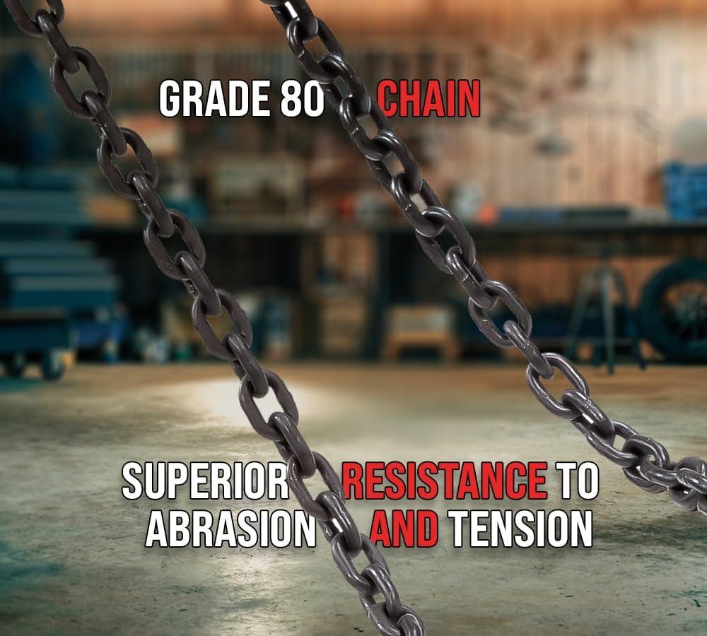 Grade 80 Chain – These chains meet the NACM (National Association of Chain Manufacturers) standards & are officially approved for verticle lifting.