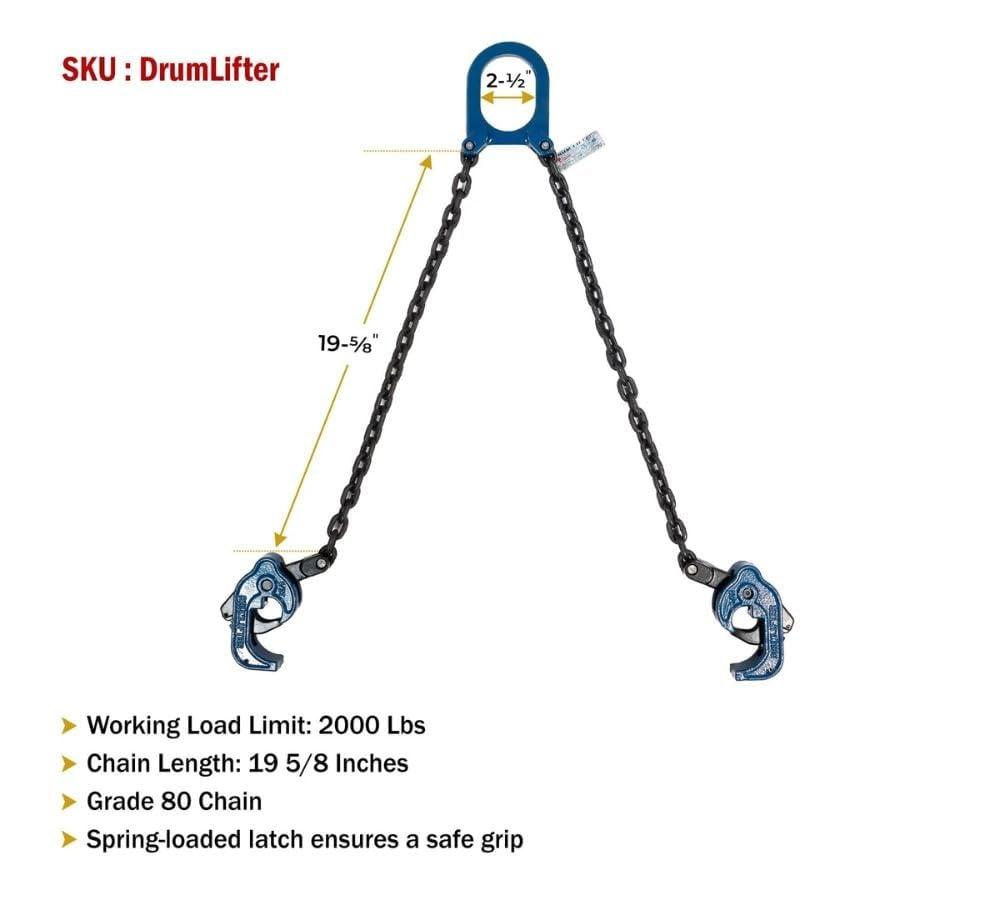Spring Loaded Latch – The spring-loaded latch creates a tight grip while it’s being lifted & simple release mechanism once the drum has been lifted where it needs to be.
