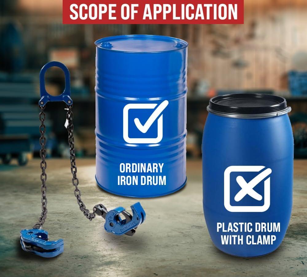 Multi Gallon Drum Lifter – This chain drum lifter can easily lift 30 gallon, 55 gallon drums & more with a top lid.