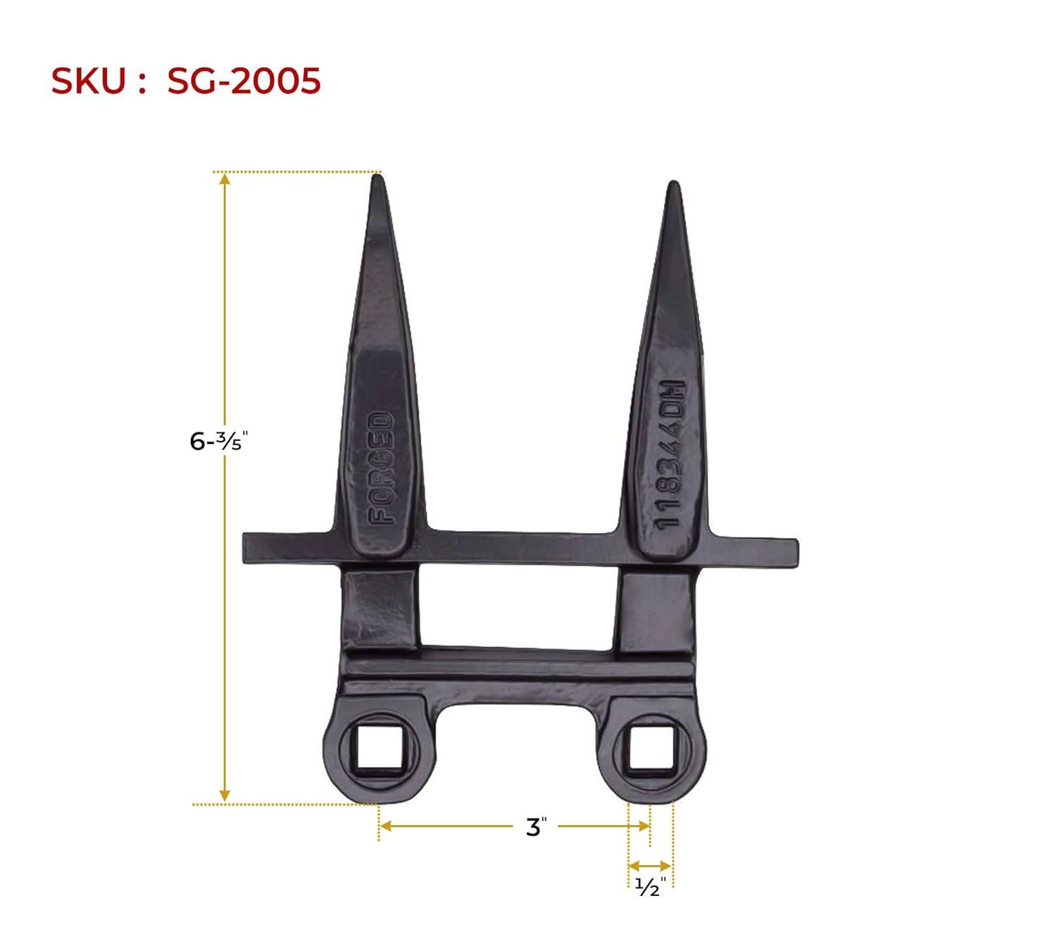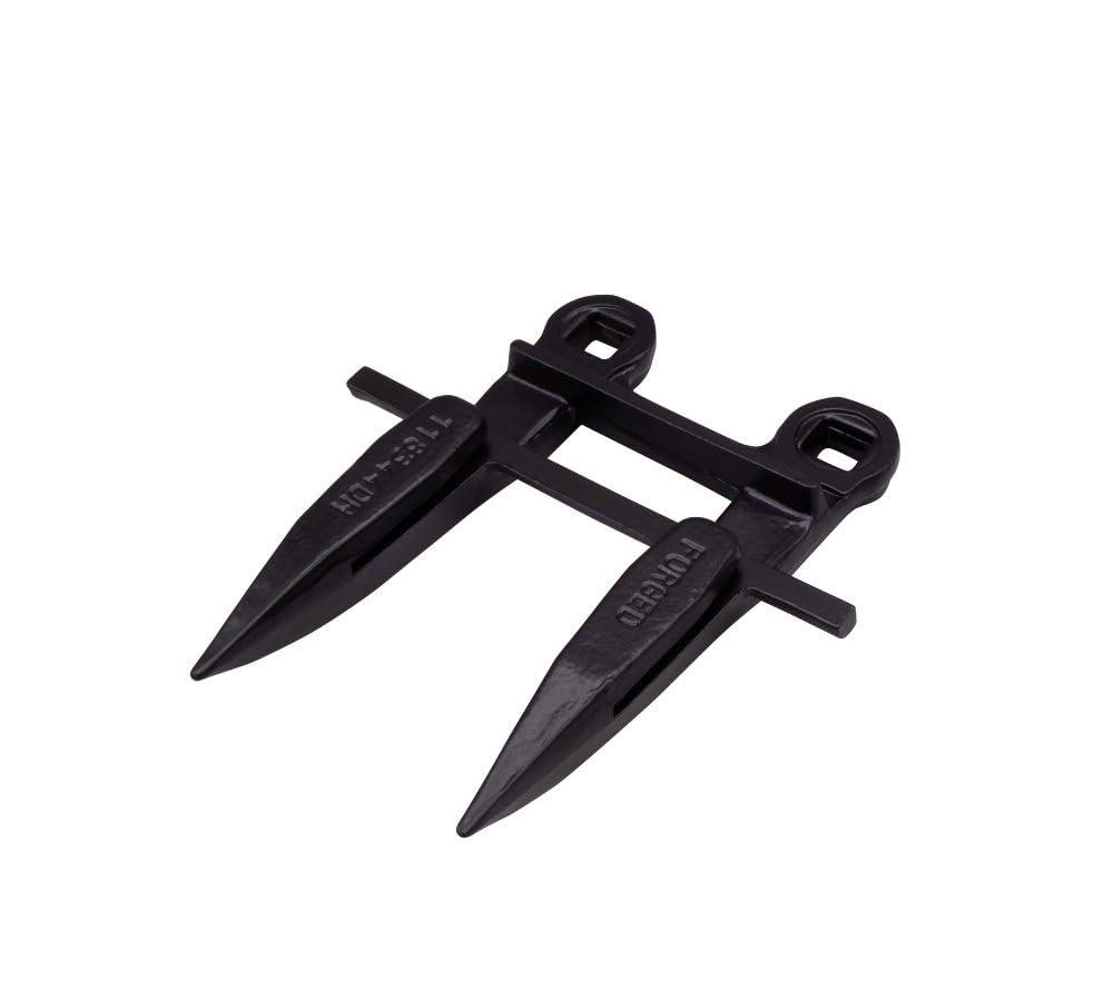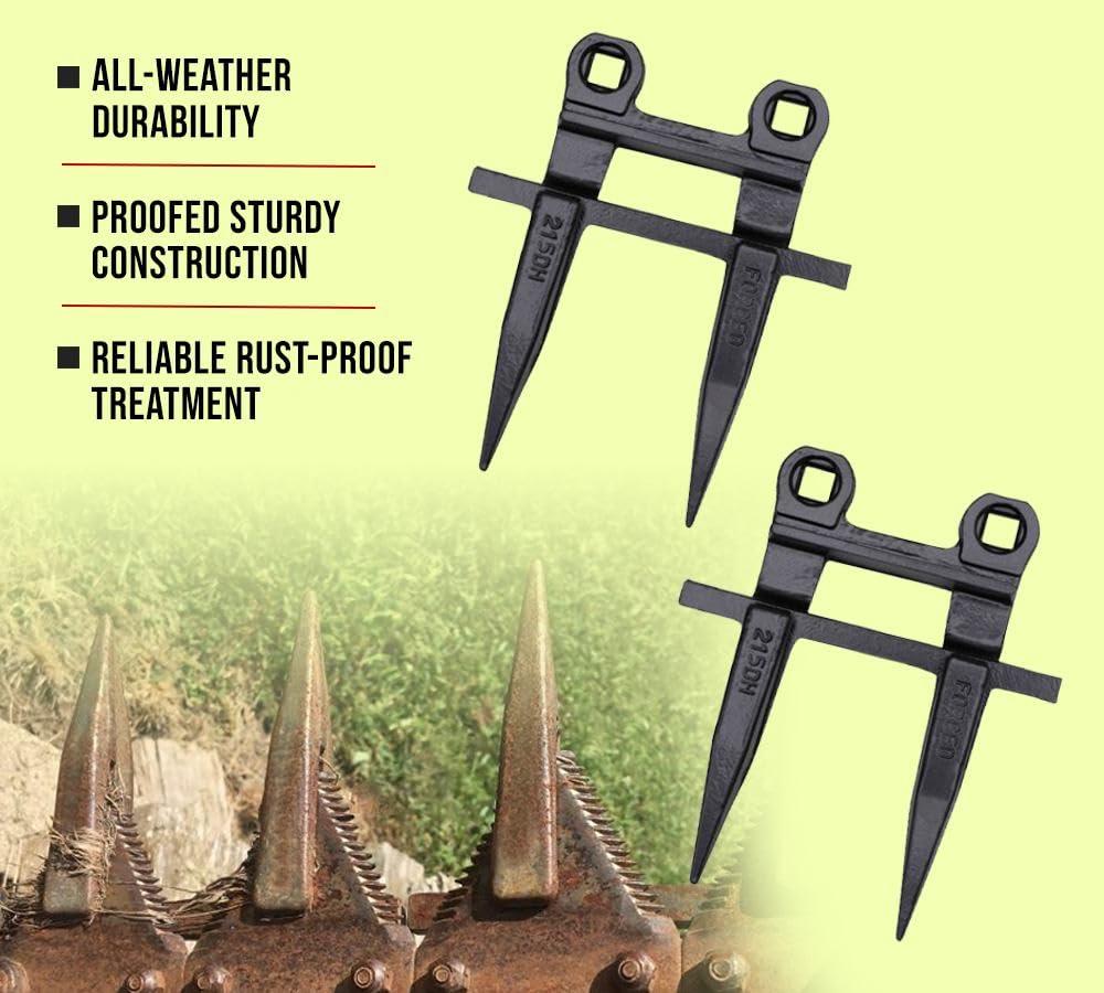 - Optimal Protection: The black, bident-shaped sickle guard is forged from high-quality steel, serving as a sacrificial part. It safeguards your combine's cutting components, particularly the sickle or knife sections, by breaking or pivoting upon contact with obstacles. This proactive design reduces the risk of damage, minimizing downtime and costly repairs.