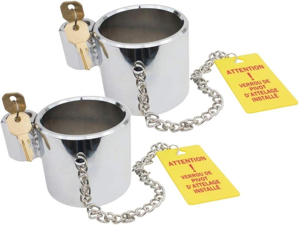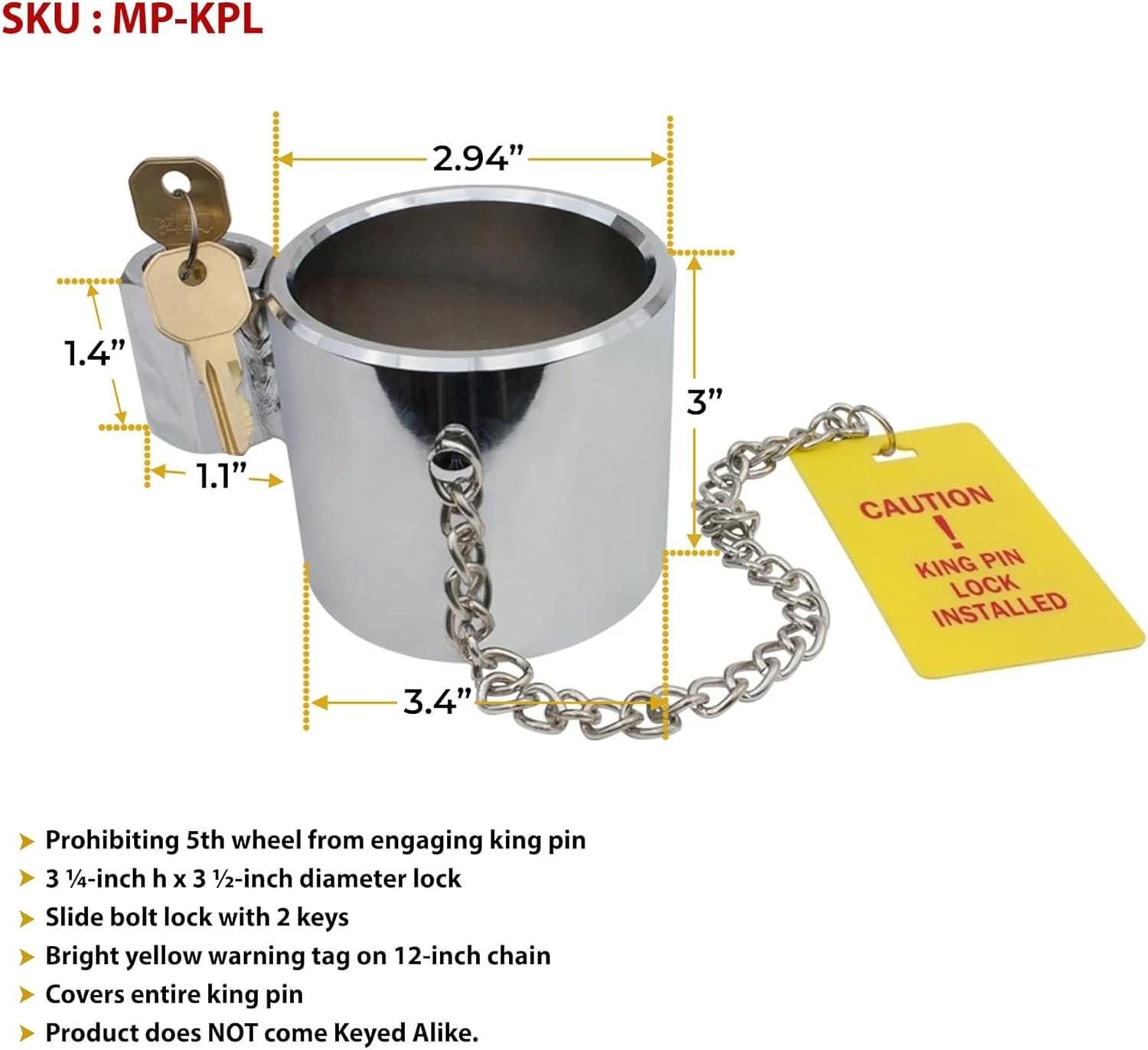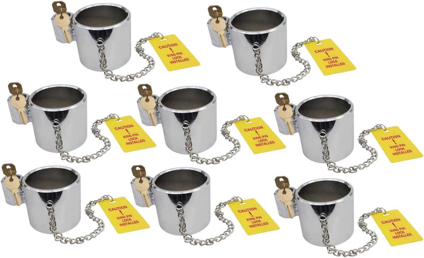 Mytee Products (2 Pack) King Pin Lock, Heavy Duty Orange Powder Coated with Safety Ribbon, Works with Class 8 Vehicles and RV Trailers(Chromium (Keyed Differently))