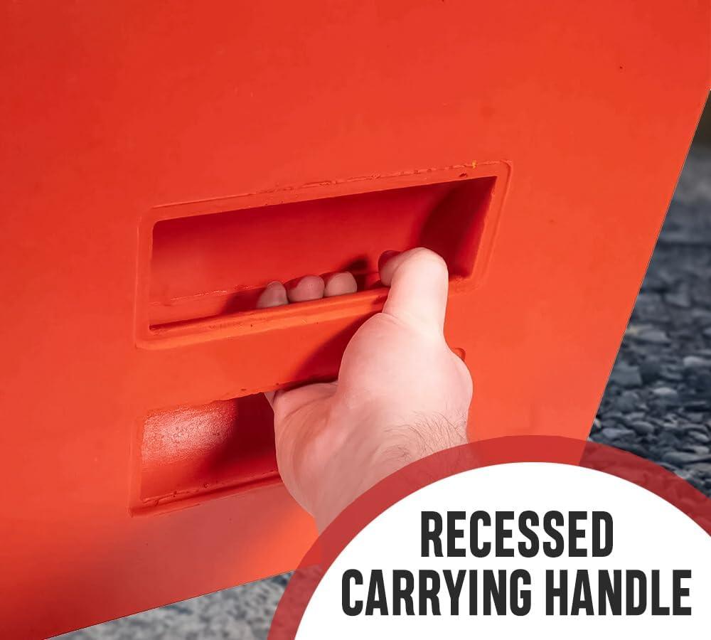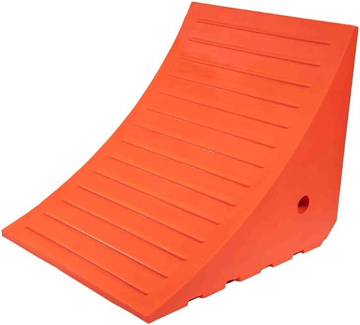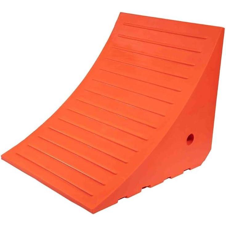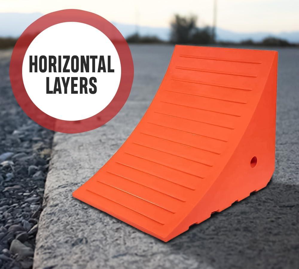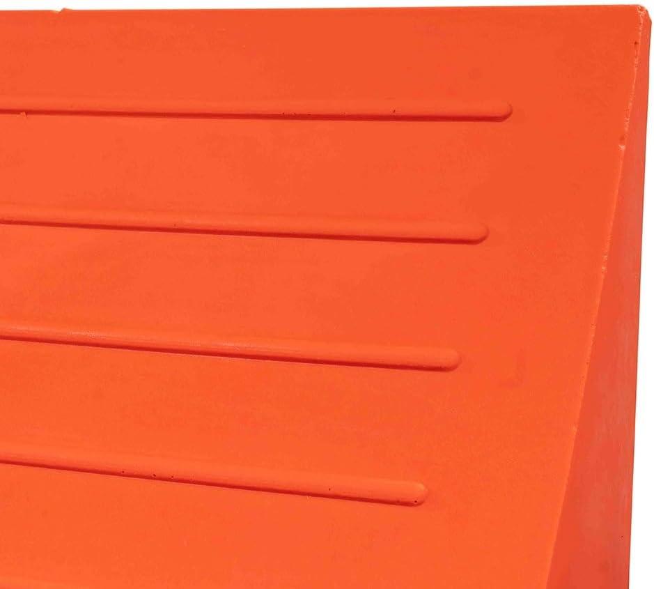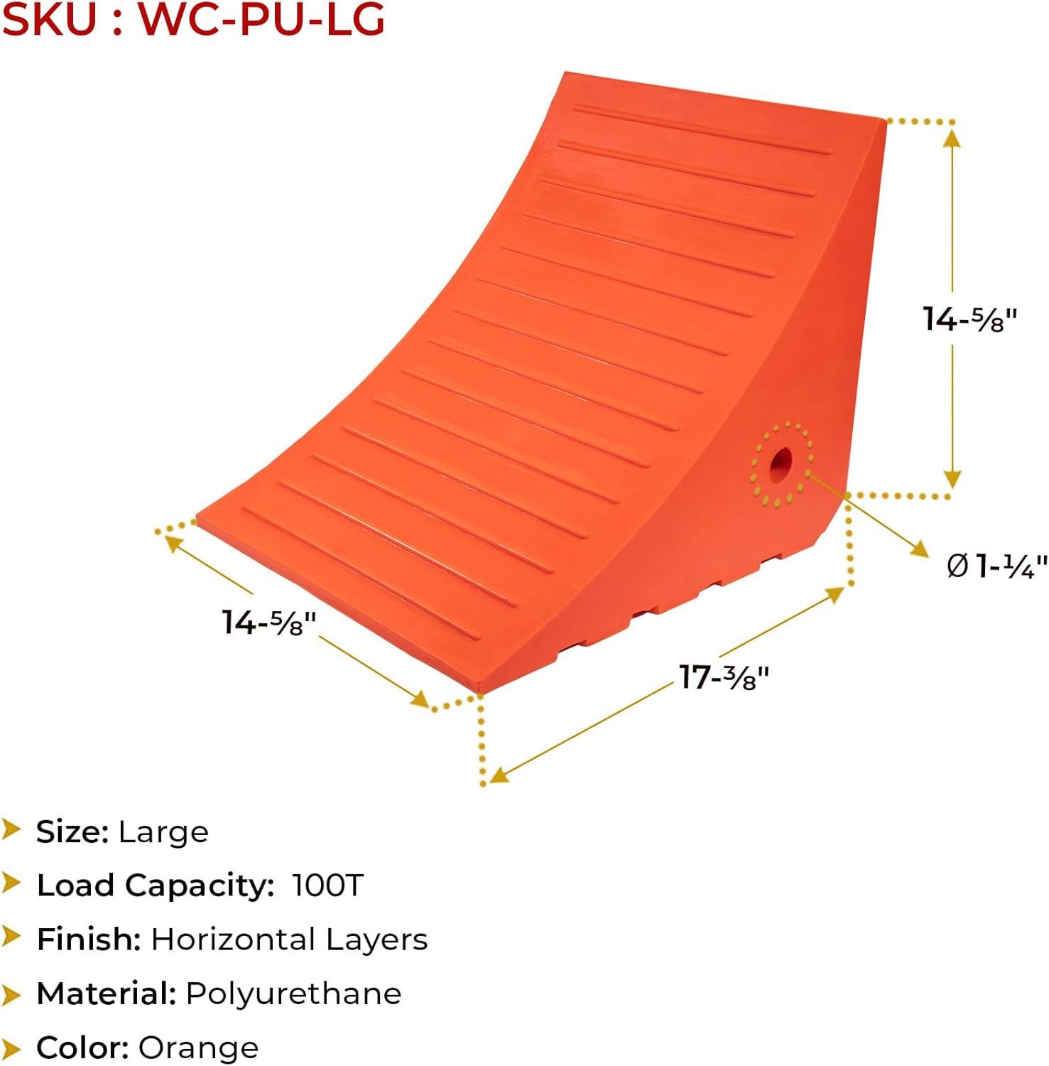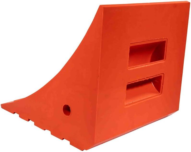 - Robust Construction: The orange polyurethane wheel chock has vertical layers that offer great stability and grip to the vehicles. It has mounting holes for chains, ropes, and eye bolts to connect other wheel chocks. It creates a tether point, which enables safe storage and prevents theft. Additionally, it has a recessed carrying handle for easy carrying and portability. You can stop and withstand heavier loads while preventing accidental collisions and costly damage.