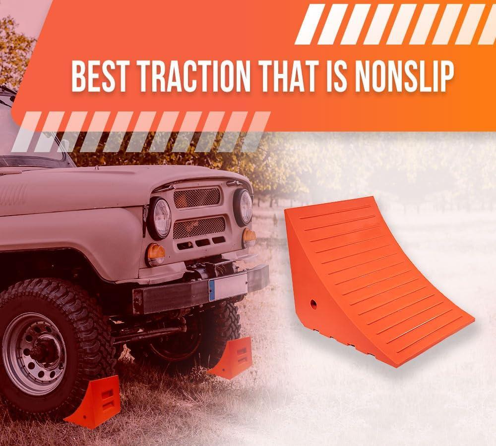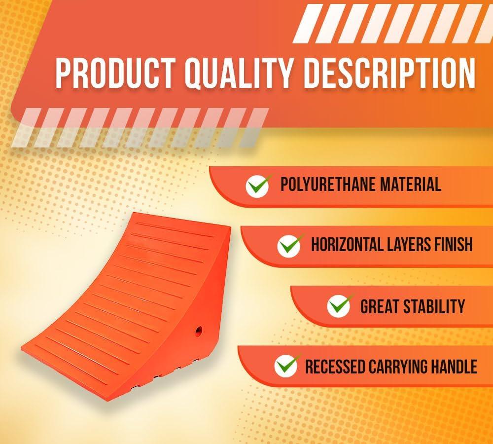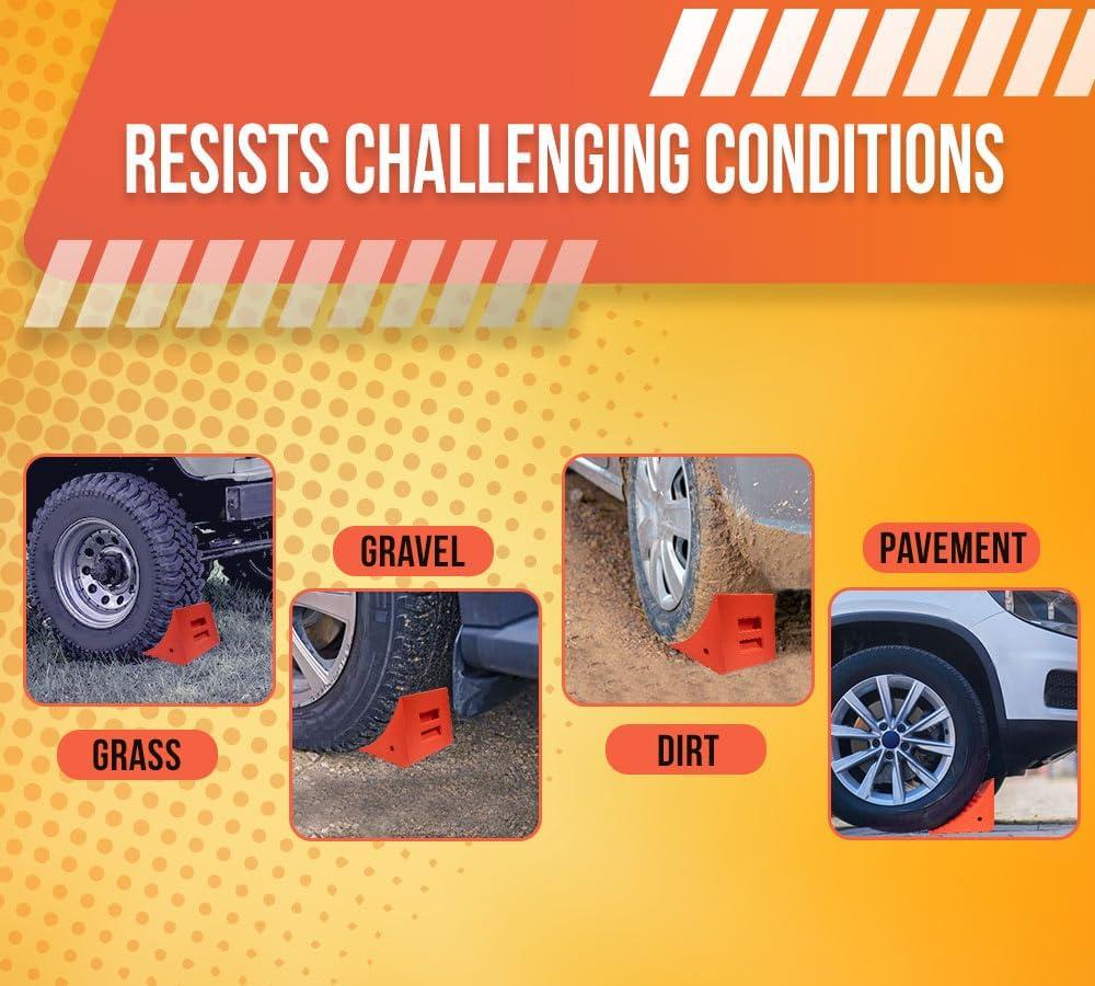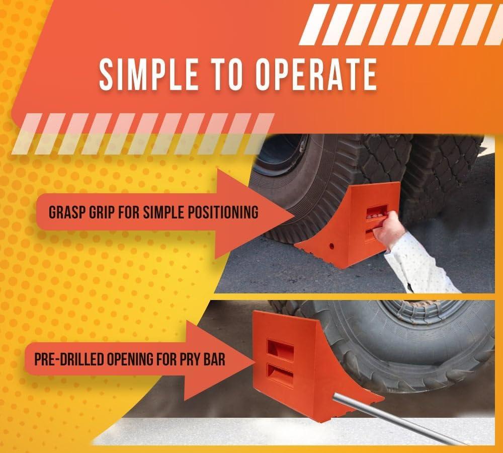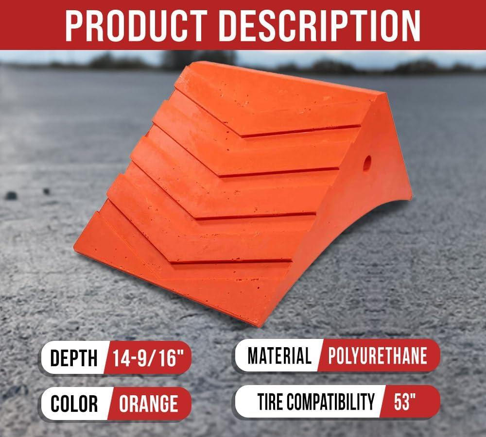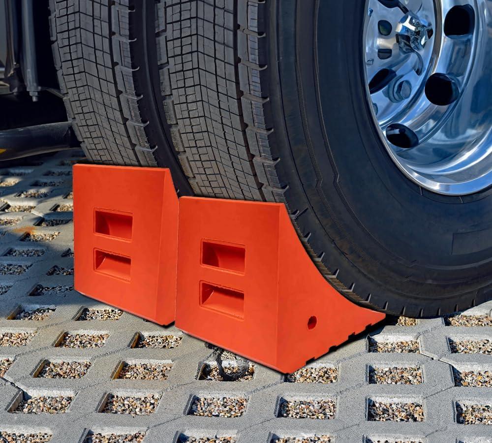 - Wide Usage: You can use our orange polyurethane wheel chock to stop and stabilize vehicles, including cars, trucks, trailers, RVs, and heavy equipment. It will work the same in indoor and outdoor spaces, camping or picnics, warehouses, storage, etc.